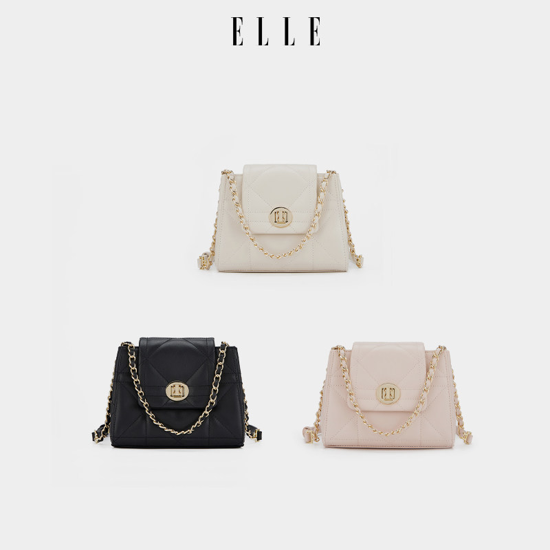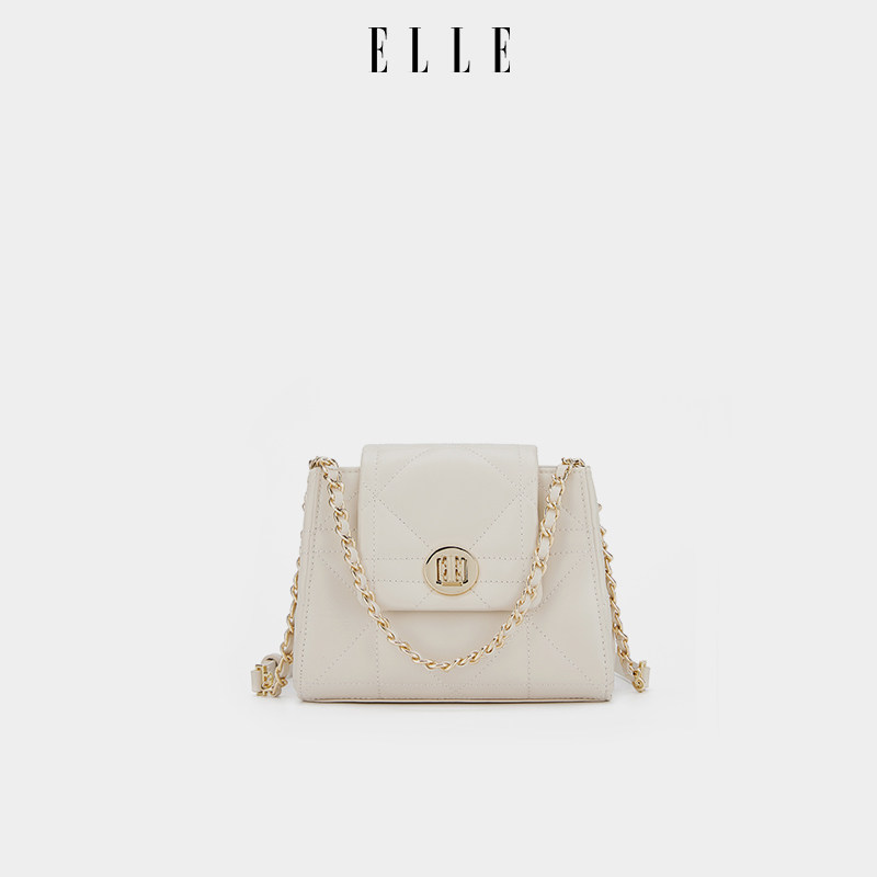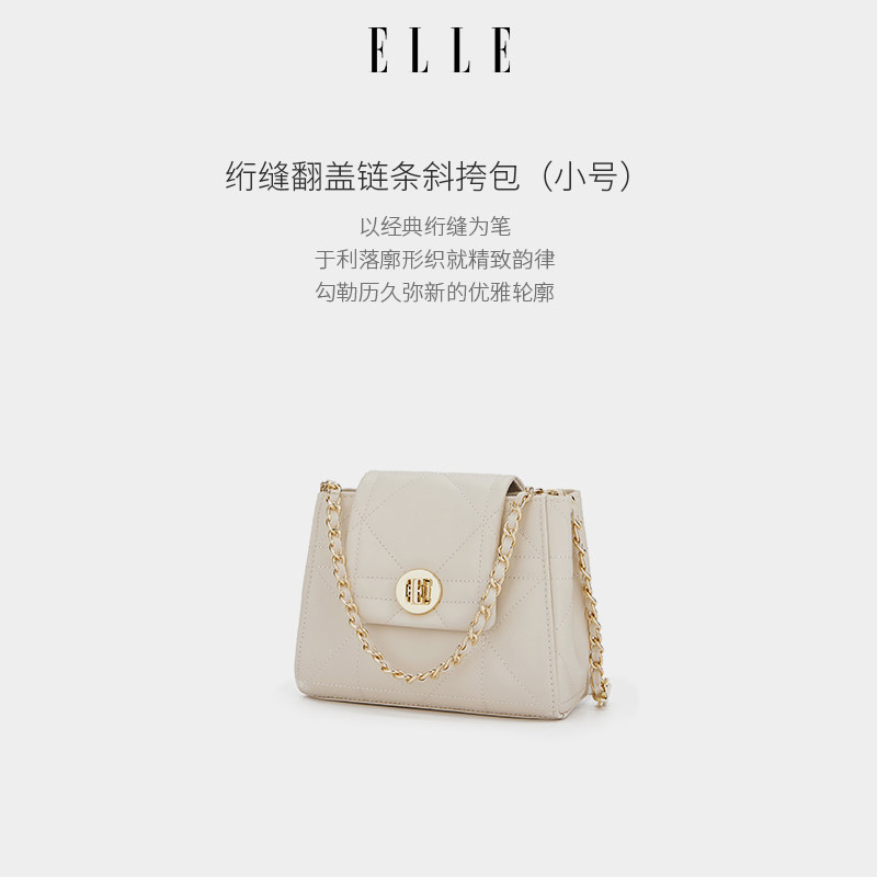 新年礼物ELLE女包新款绗缝翻盖链条小方包超火好看白色包包单肩包