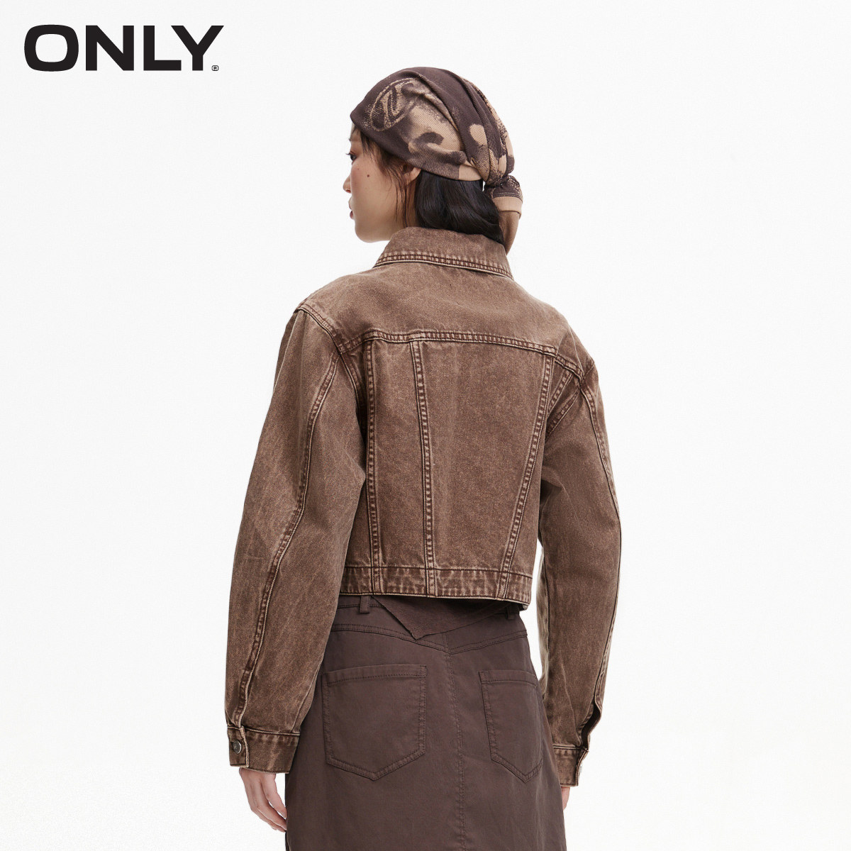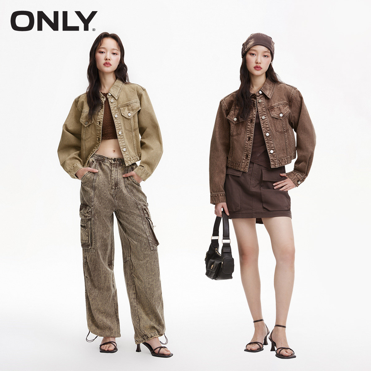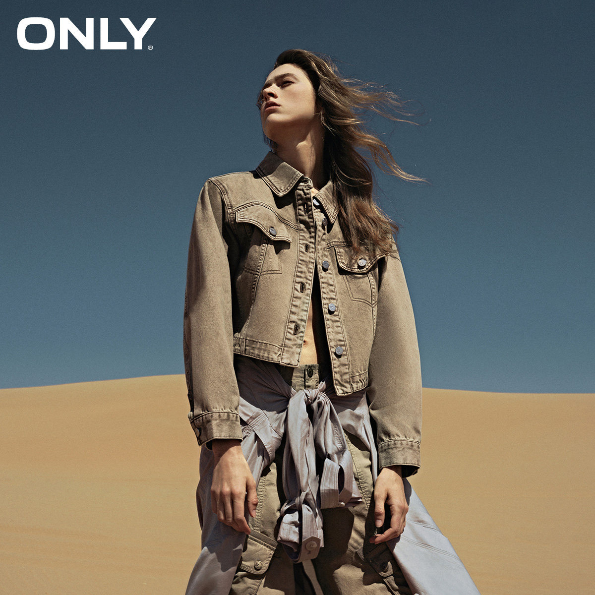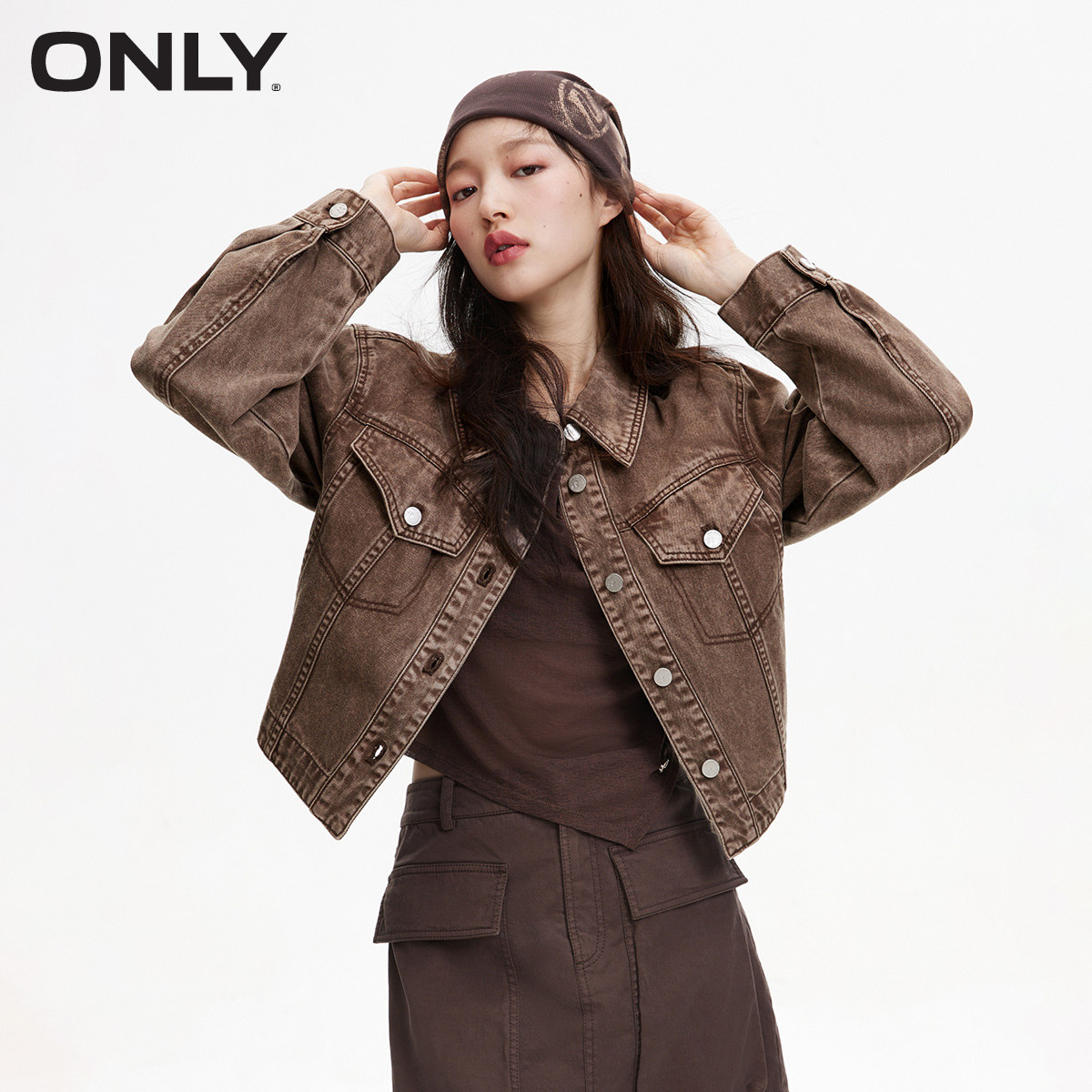 【ONLY奥莱】春季新款复古做旧水洗金属纽扣翻领短款外套女