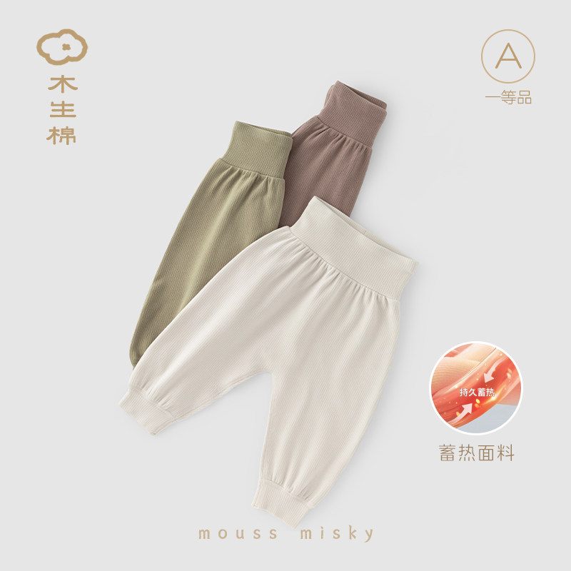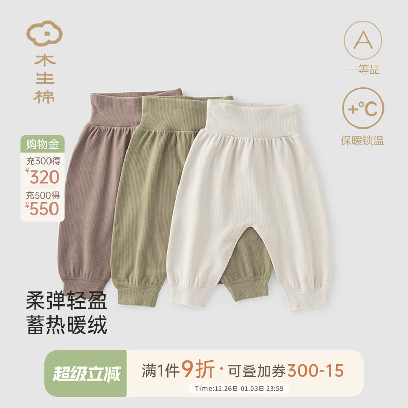 木生棉宝宝高腰护肚裤春秋季保暖睡裤婴儿居家打底弹力长裤防着凉