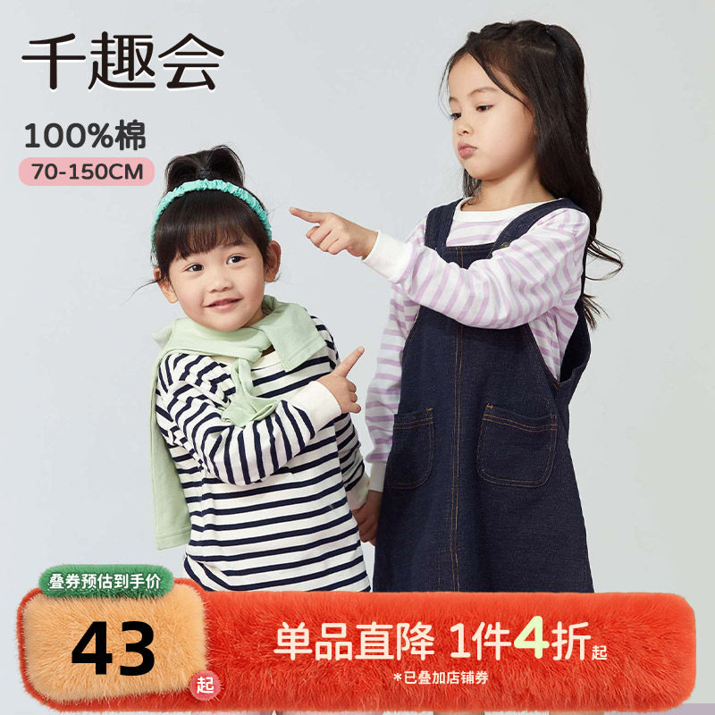 千趣会童装儿童25春秋长袖棉T恤男女童亲子款百搭条纹上衣打底衫