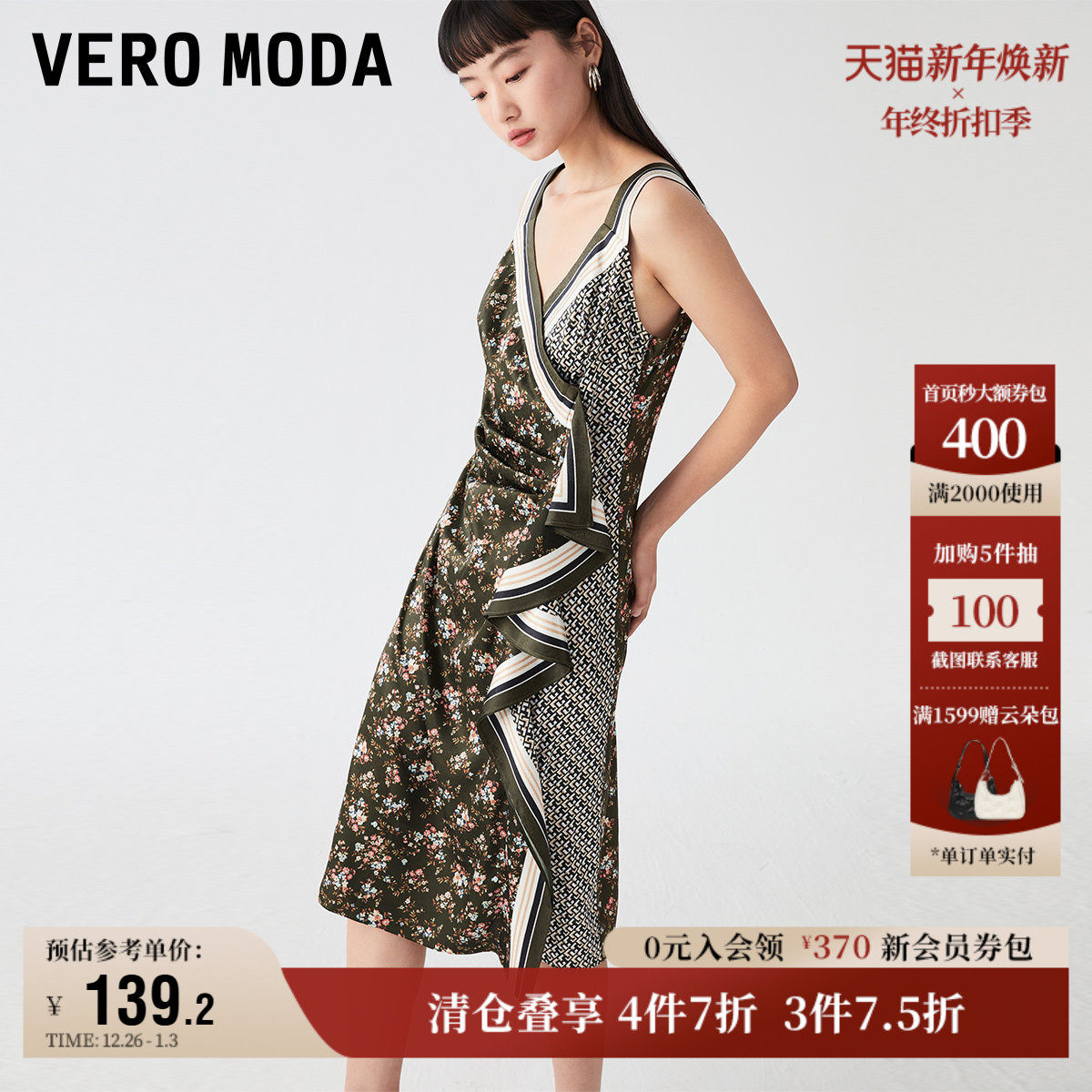 Vero Moda奥莱连衣裙夏季清仓V领无袖不规则设计印花中裙气质女人