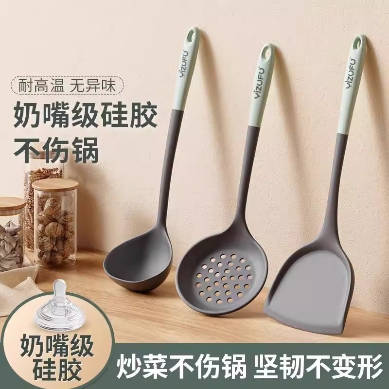 锅铲不粘锅专用炒菜铲子耐高温食品级家用硅胶铲汤勺漏勺厨具套装