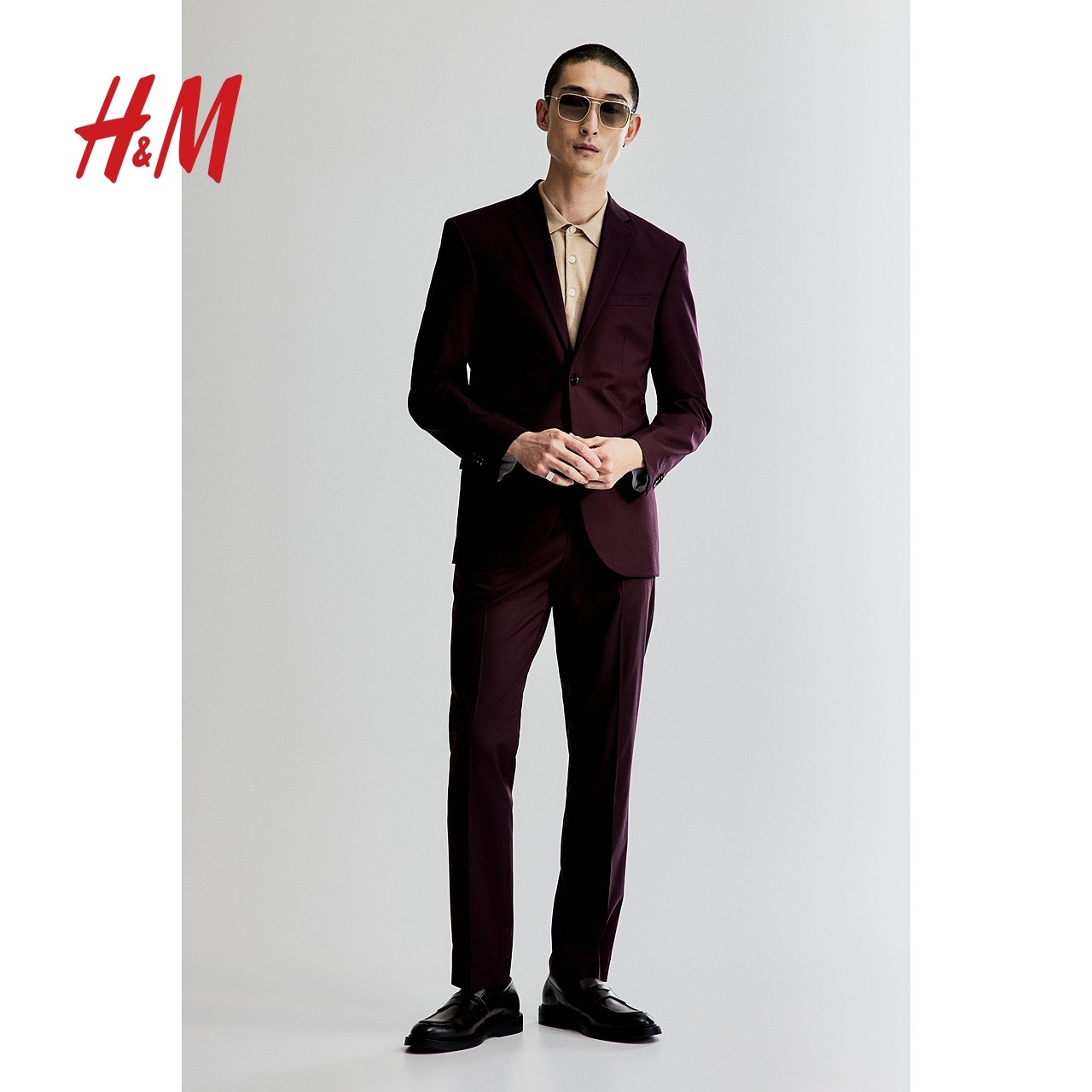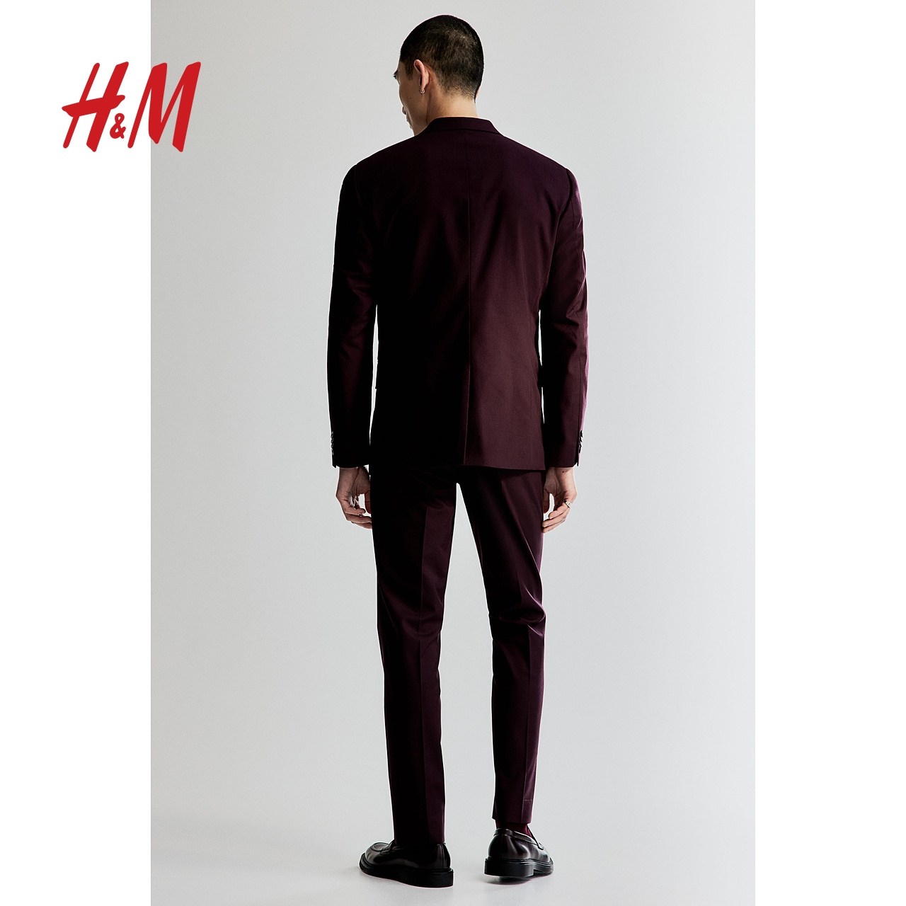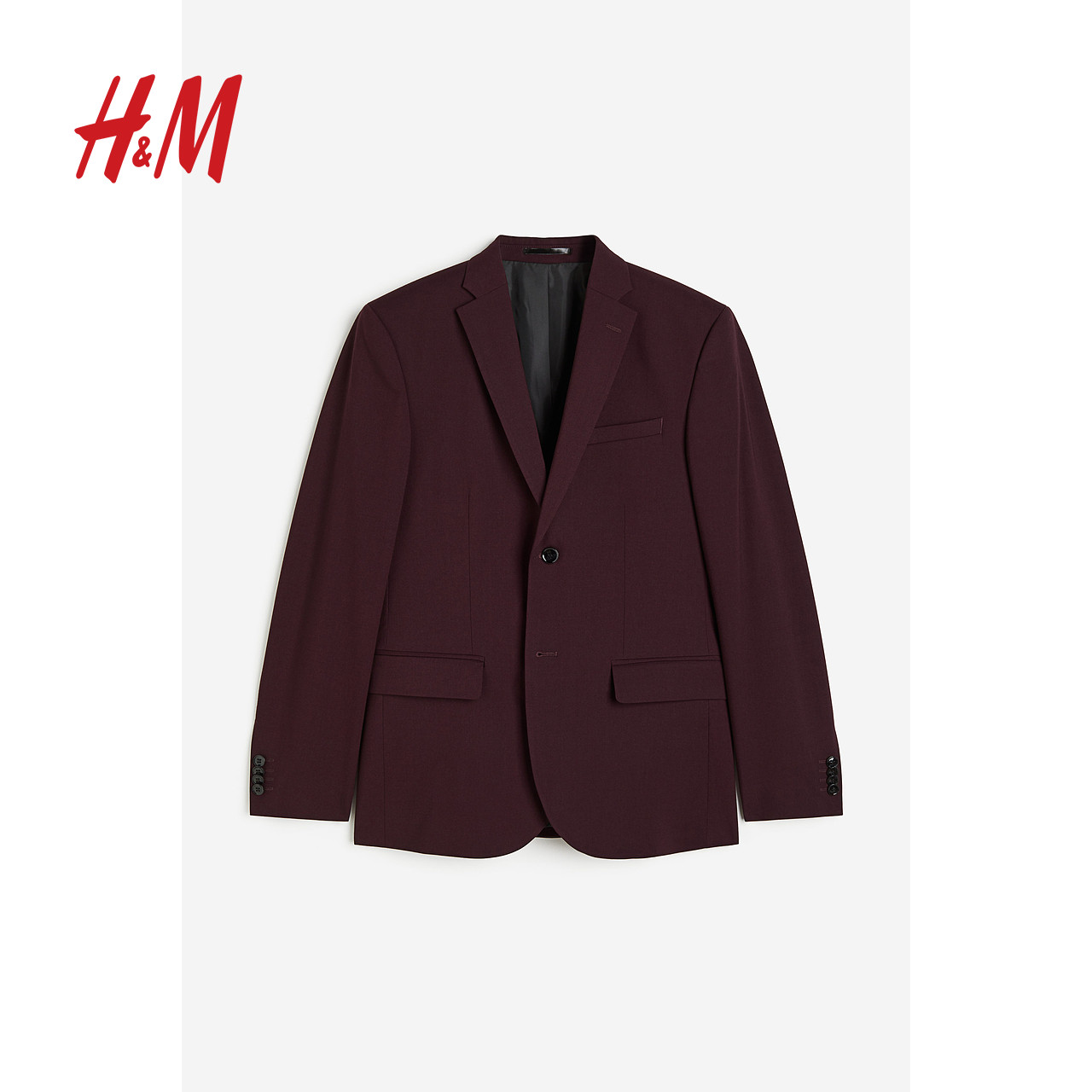 HM男装西服冬季商务单排扣合身红色西装伴郎服0713986
