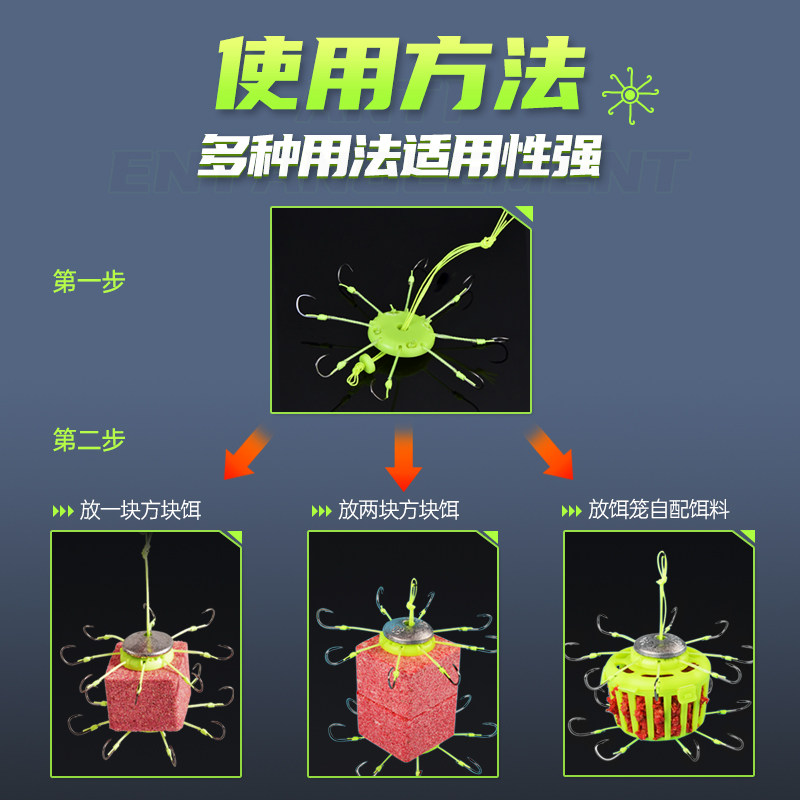 新型朝天翻板钩万向防缠绕防挂底鲢鳙盘钩海杆鱼钩爆炸钩配件方块
