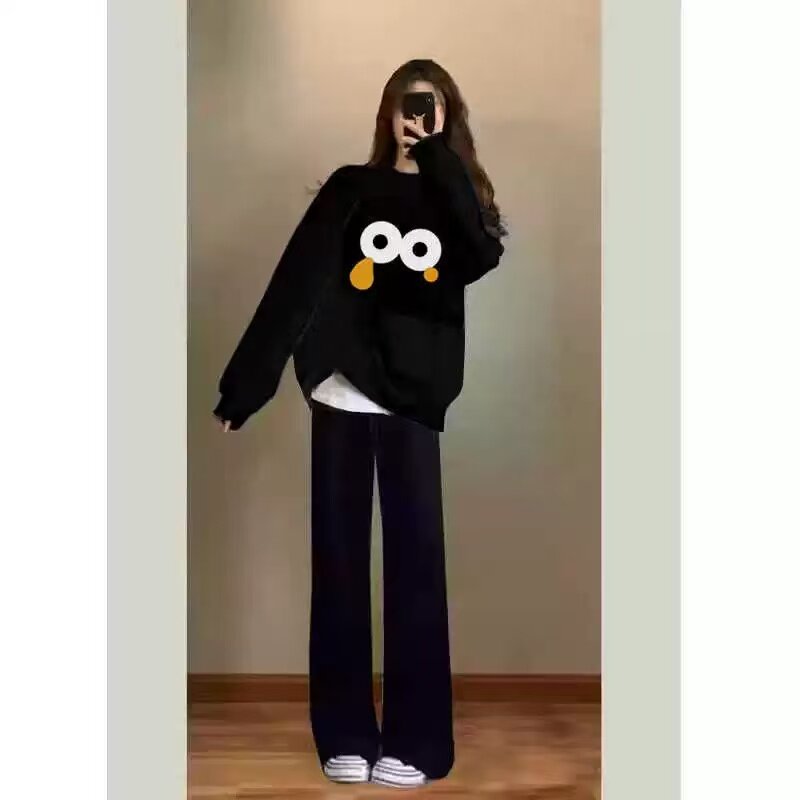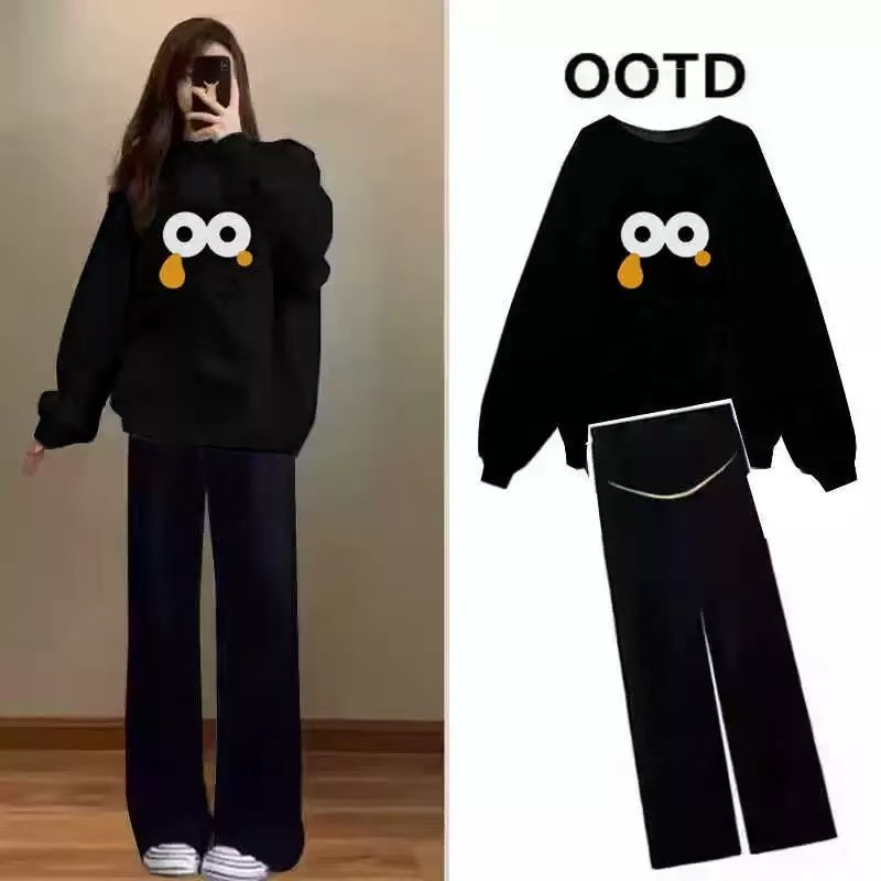 孕妇装秋冬加厚圆领卫衣2025新款套装宽松显瘦日常通勤休闲两件套