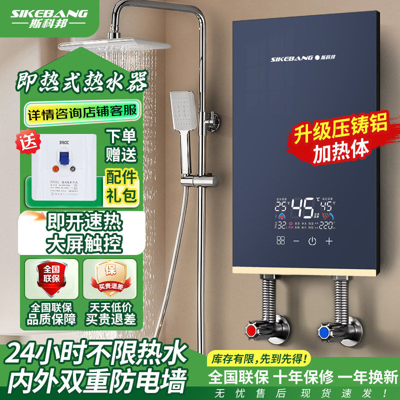 斯科邦压铸铝即热式电热水器家用迷你小型速热恒温卫生间淋浴节能