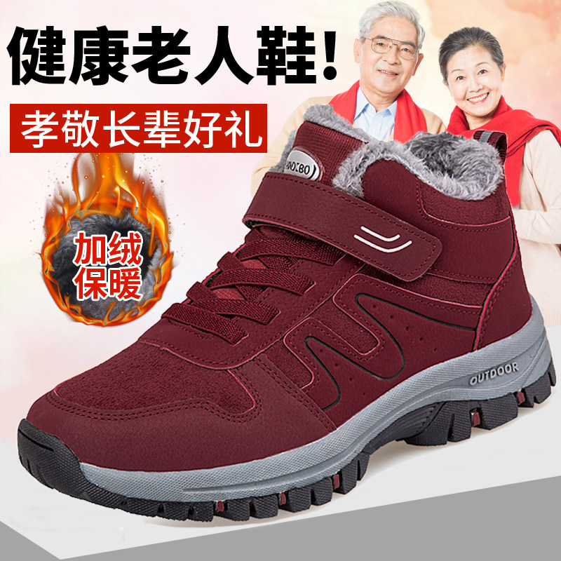 寿老人鞋棉鞋冬季加绒保暖中老年健步鞋妈妈鞋雪地靴轻便减震防滑