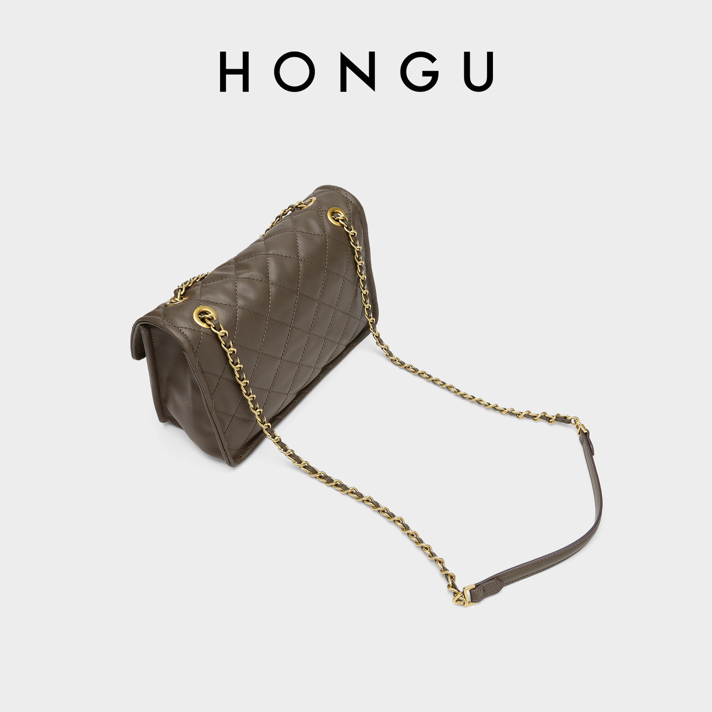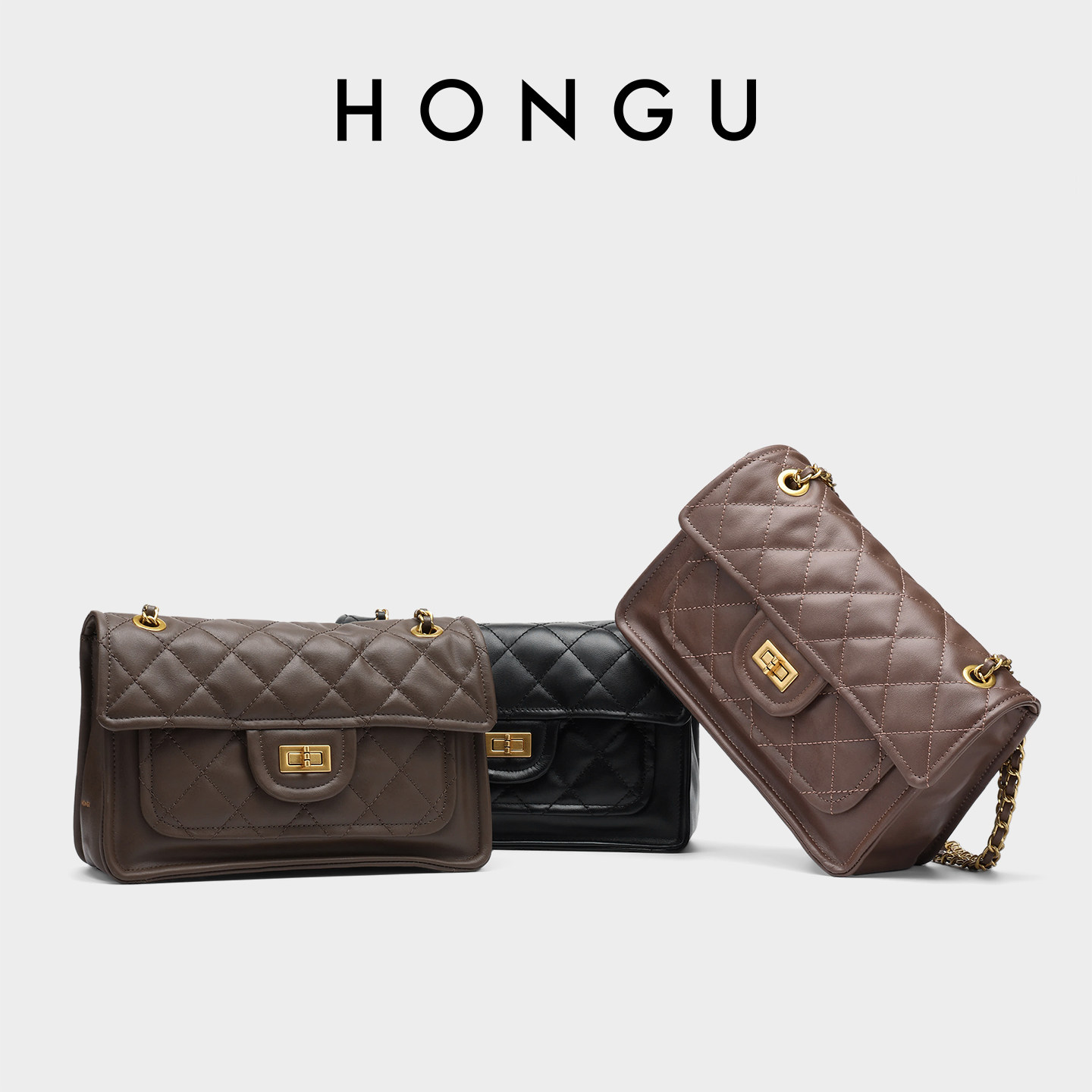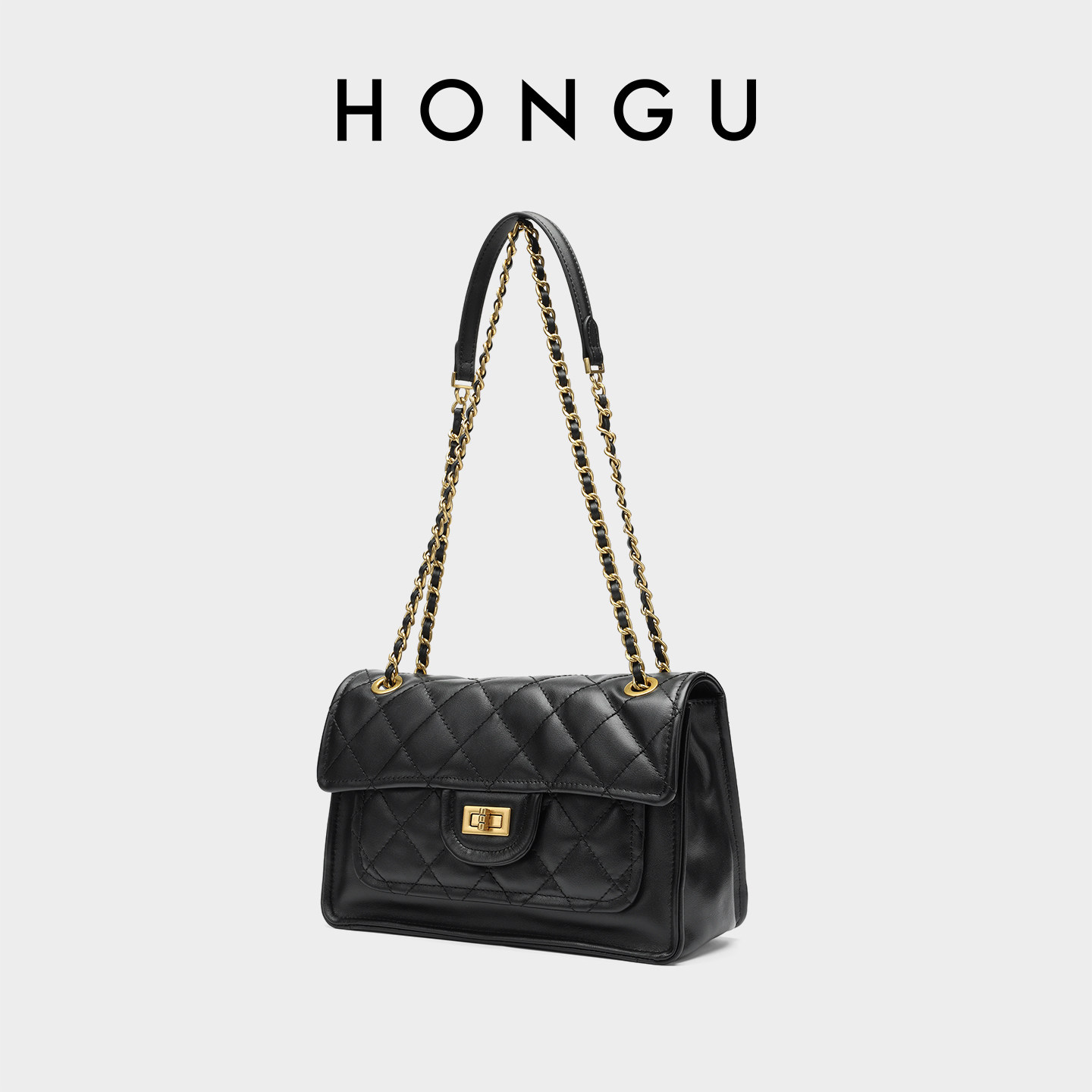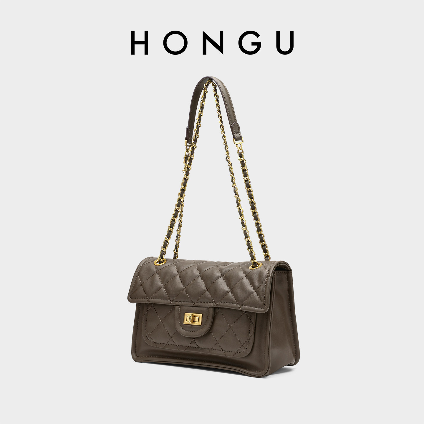 红谷包包2025新款真皮单肩腋下包时尚小香风链条斜挎小方包女士包