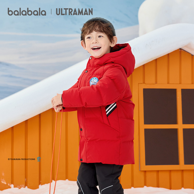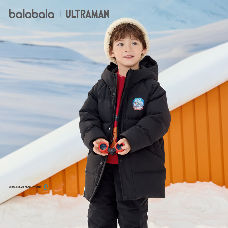 【奥特曼IP】巴拉巴拉男童羽绒服中长款冬装外套连帽保暖时尚防护