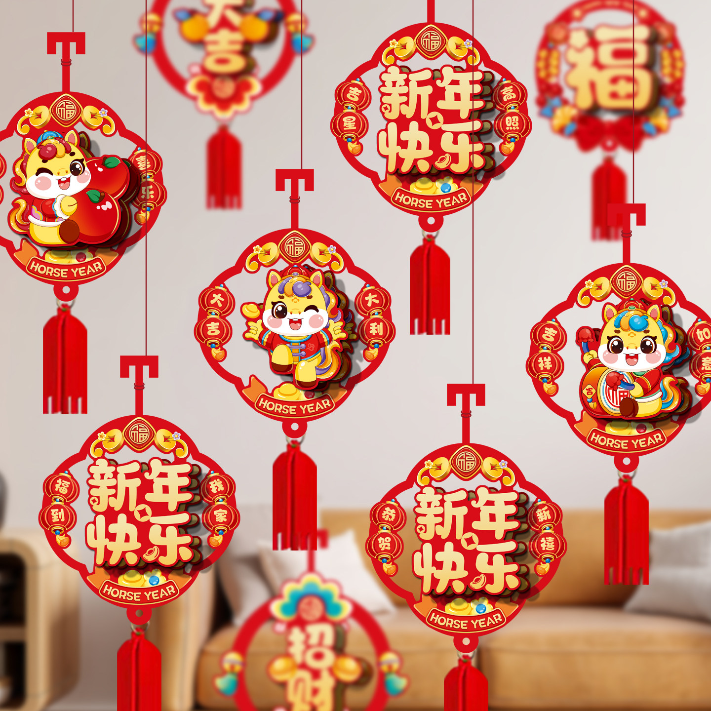 新年快乐挂件2026马年春节过年氛围场景布置门店铺装饰品挂饰元旦