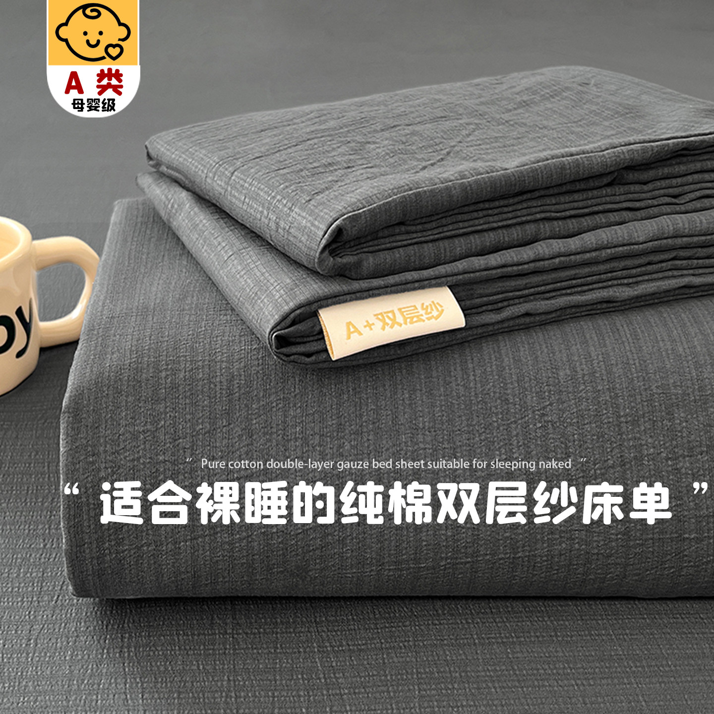A类纯棉床单单件2025新款夏季全棉双层纱被单宿舍单人枕套三件套4