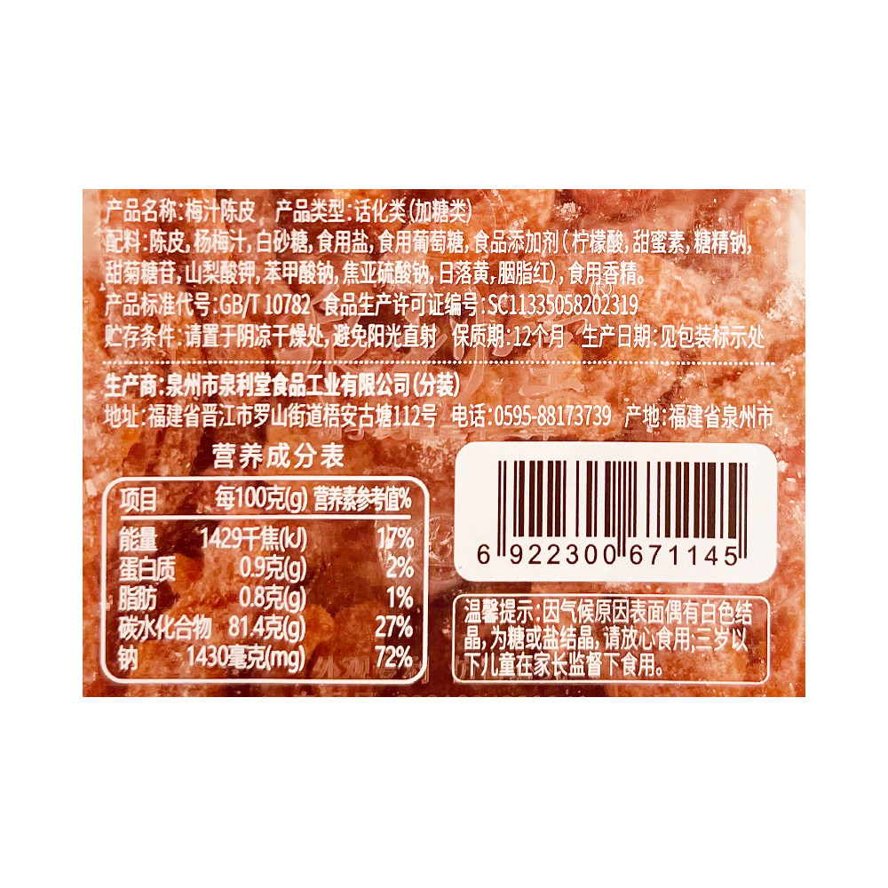 泉利堂梅汁陈皮300g梅条小零食坐车常备酸甜休闲晋江特产话梅杨梅