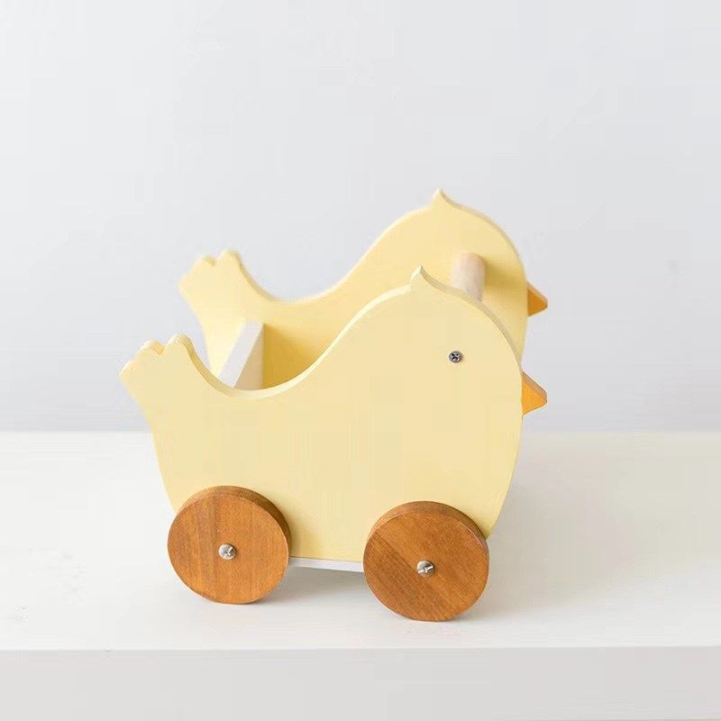 新款可爱鸭子推车小鸡木质书架儿童房装饰置物宝宝摄影拍照道具