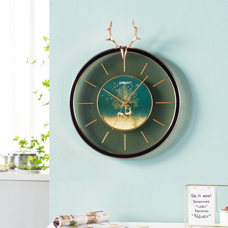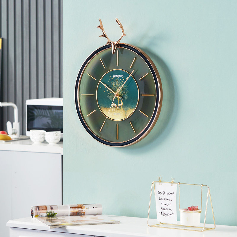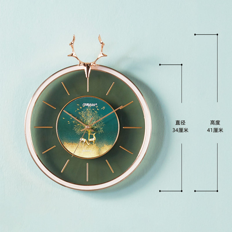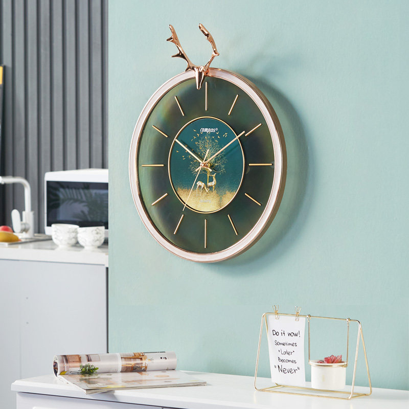 康巴丝静音挂钟北欧客厅轻奢时钟鹿头摇摆挂墙简约钟表时尚石英钟
