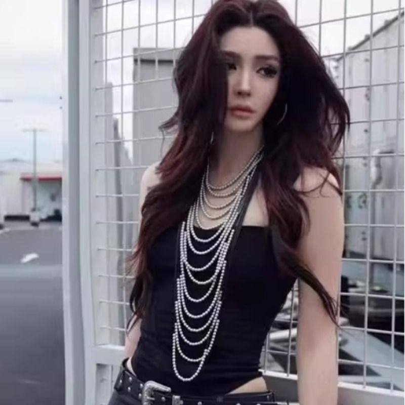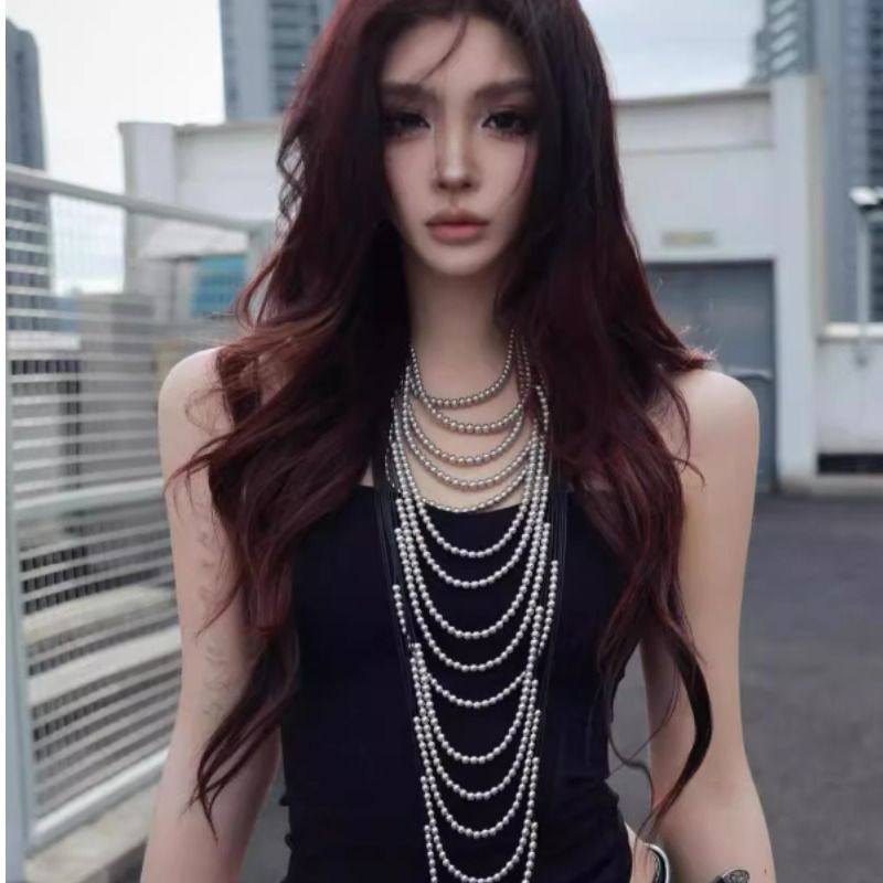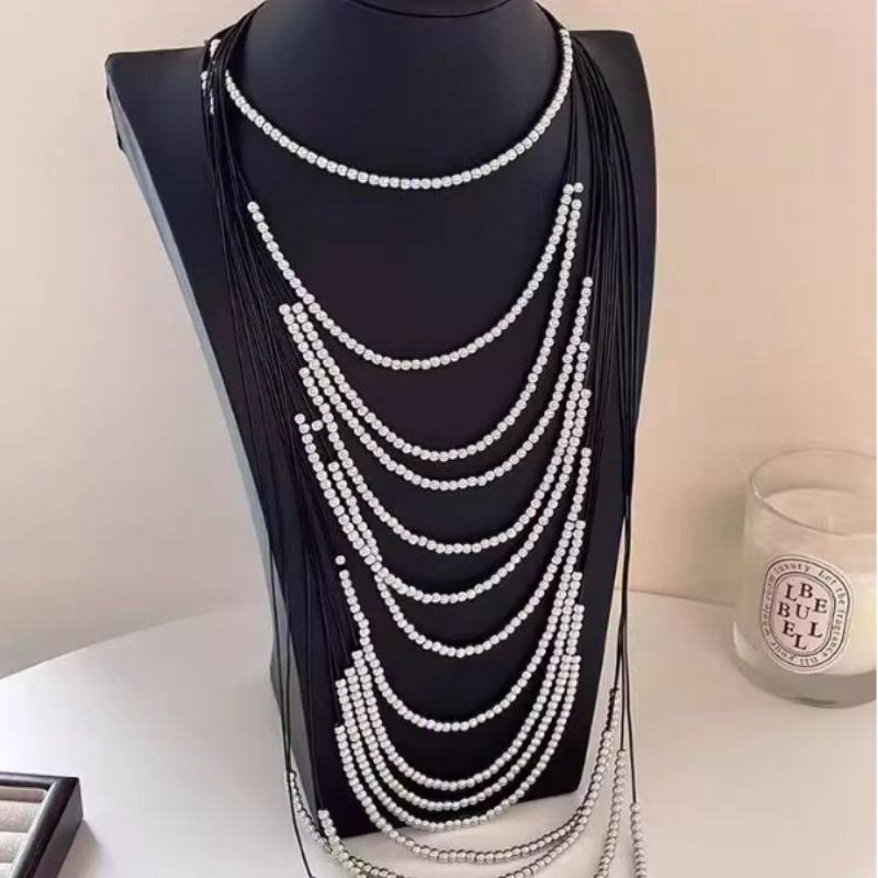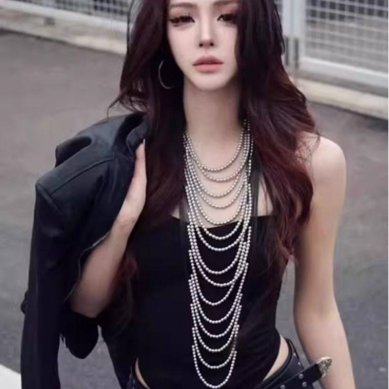 欧美风多层串珠流苏项链复古时尚高级感气质长款毛衣链性感锁骨链