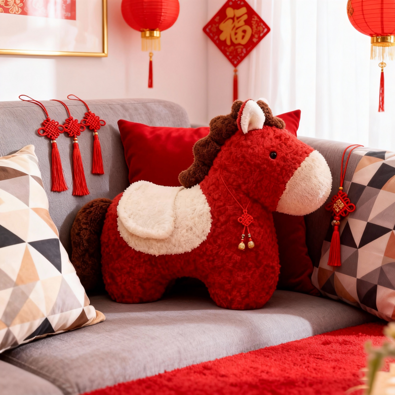 2026马年吉祥物小马抱枕毛绒玩偶沙发客厅装饰摆件睡靠枕新年礼物
