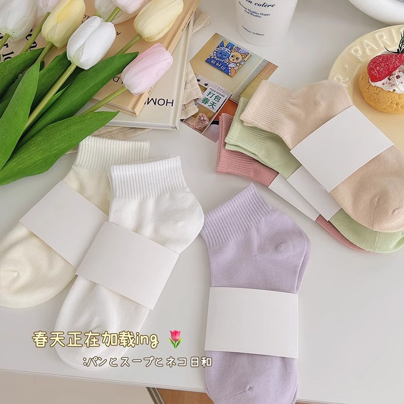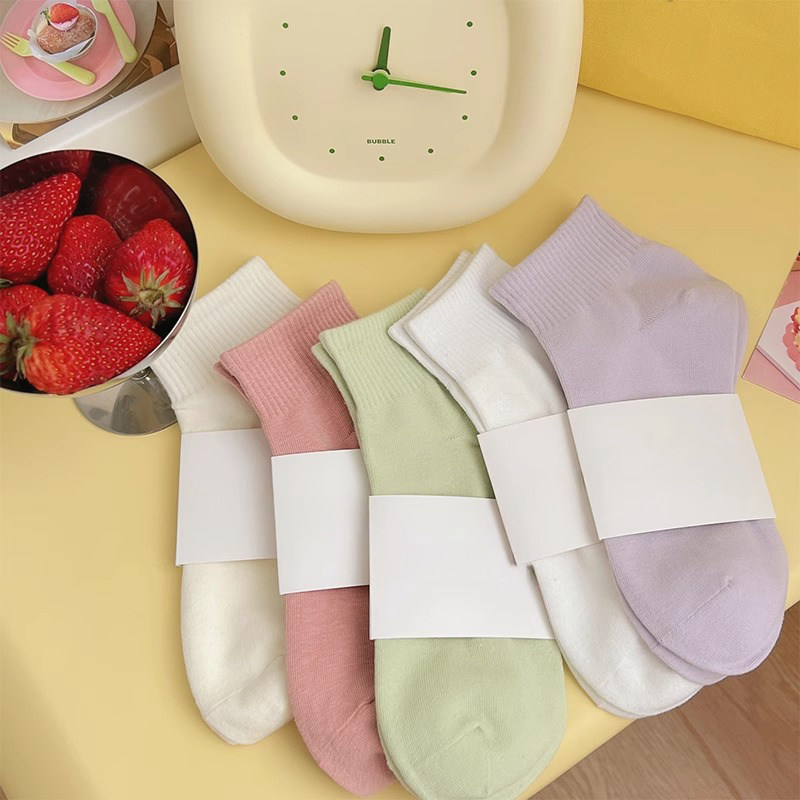 糖果色袜子女款春秋款防臭透气中筒袜无骨抗起球日系学生运动短袜
