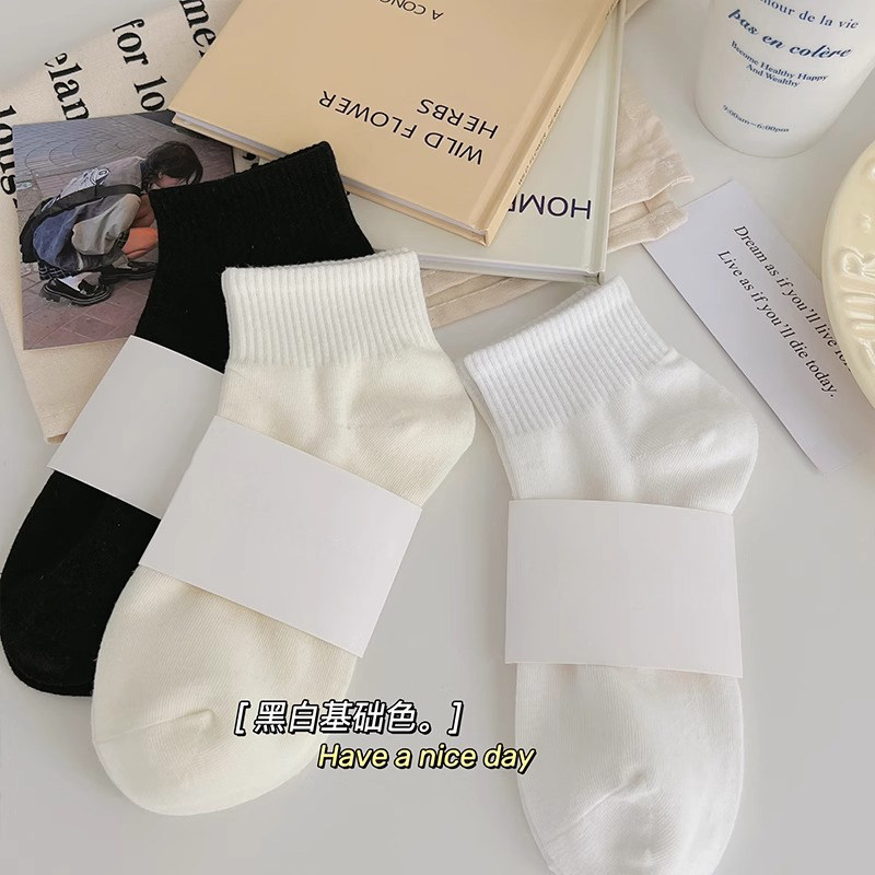 袜子女款纯棉中筒袜秋冬季抗菌防臭吸汗运动棉袜春秋款无骨短筒袜