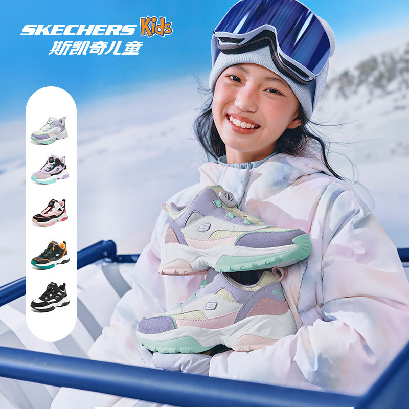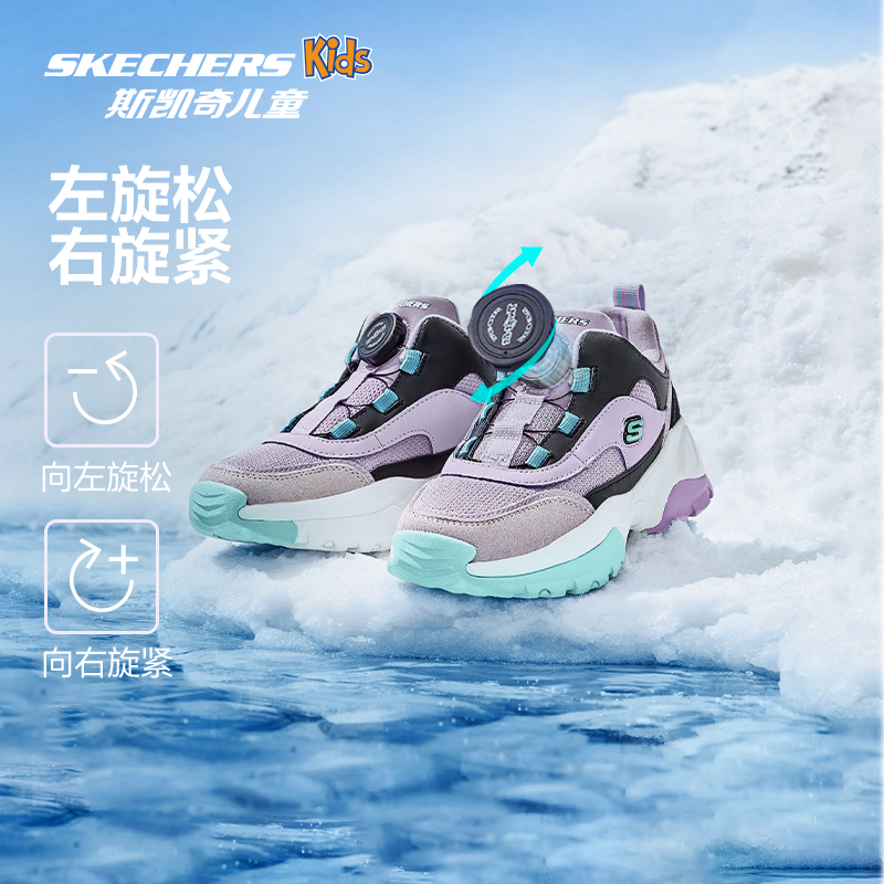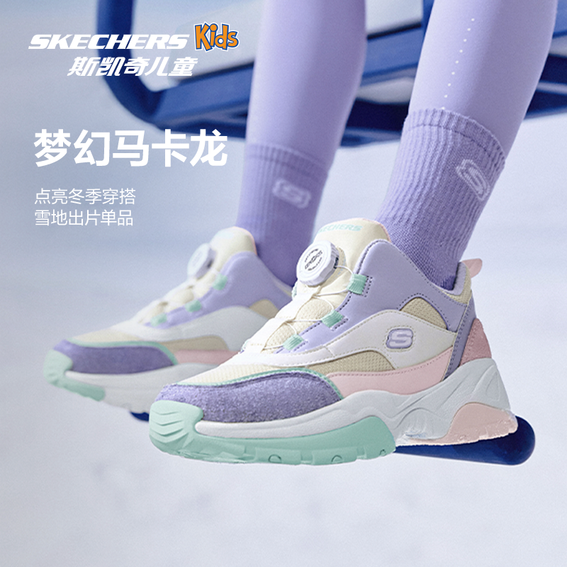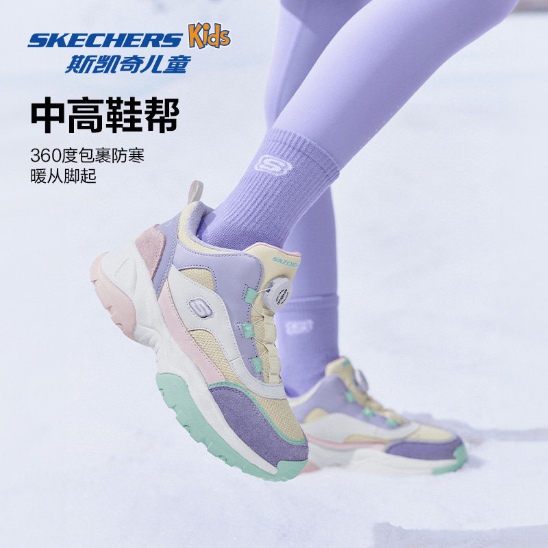 Skechers斯凯奇儿童绒绒靴冬季女童加绒保暖靴子旋钮扣复古运动鞋