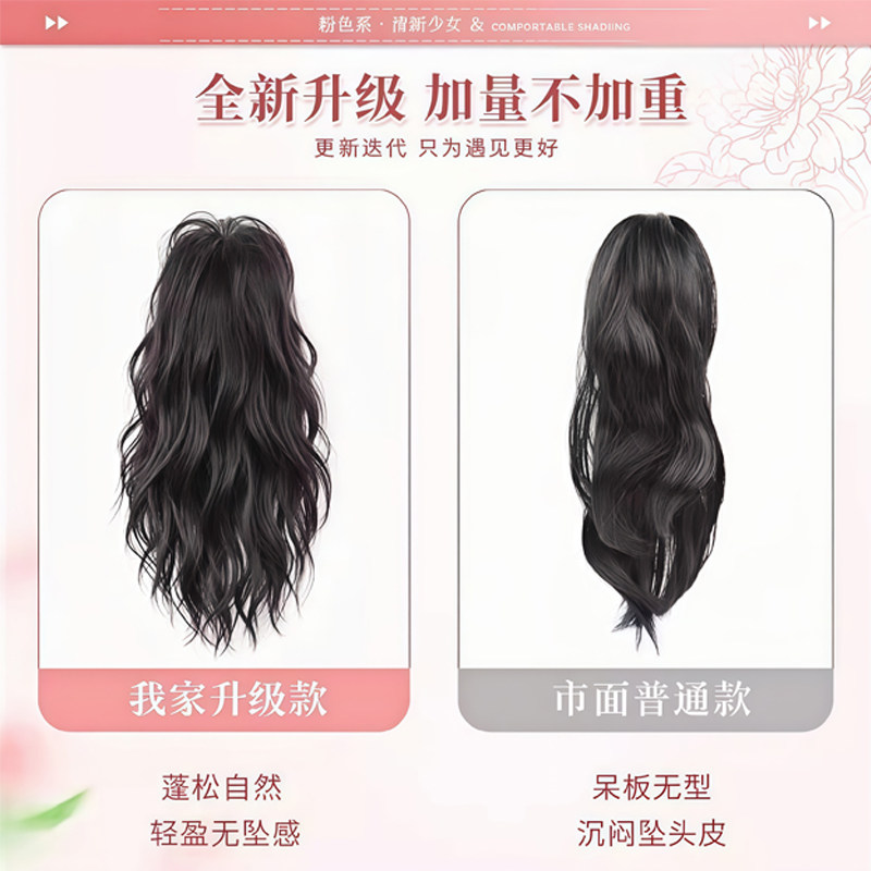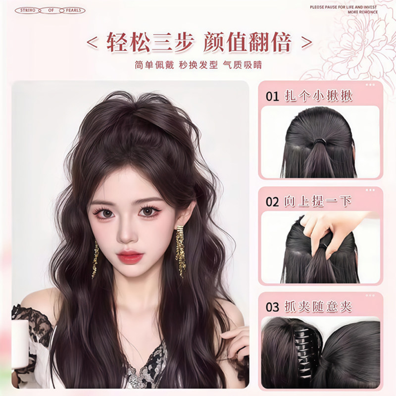 水波纹卷发瀑布半扎高马尾假发抓夹女蓬松增发神器喷泉长辫子发饰
