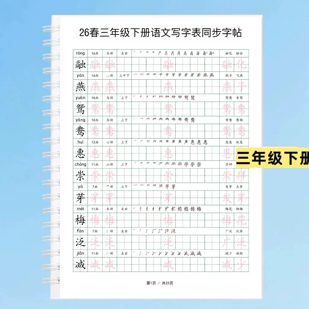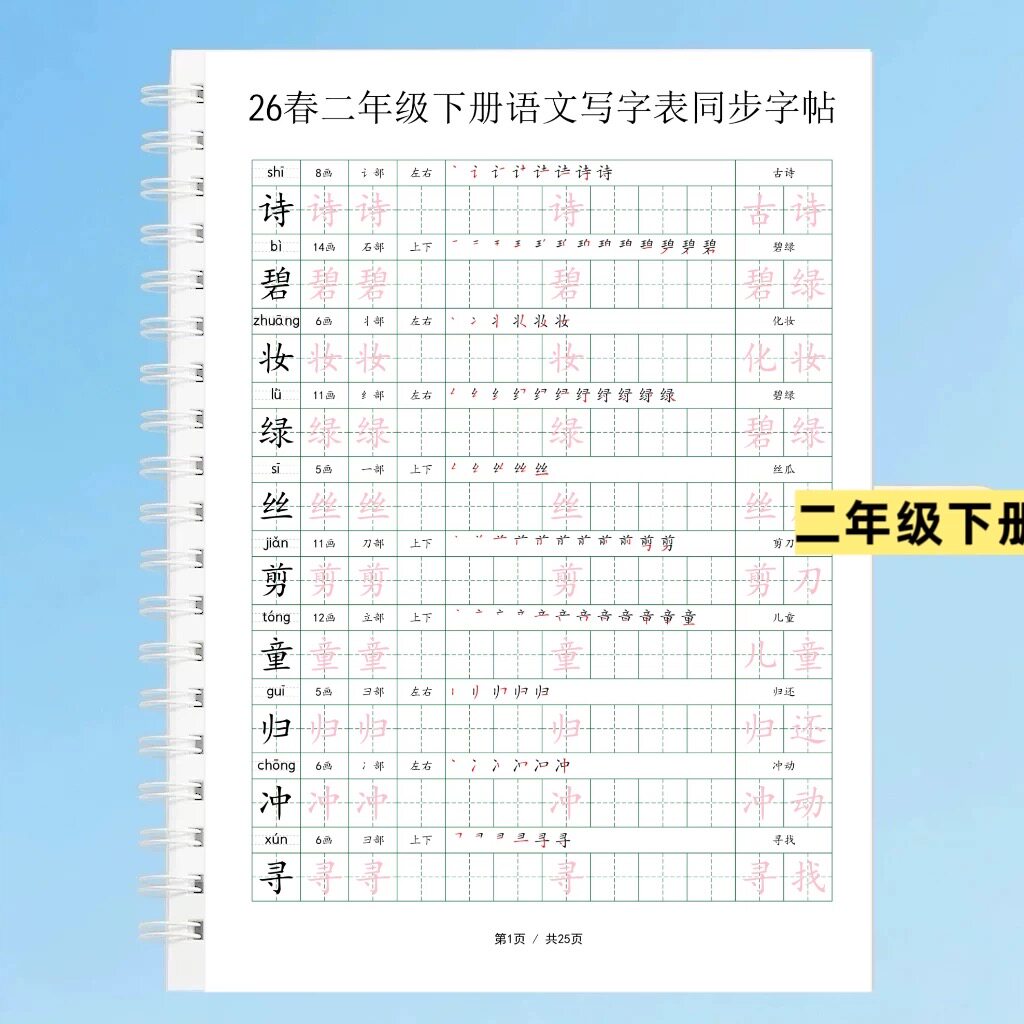 2026春新版二年级下册语文同步生字组词写字表笔顺拼音部首练字帖