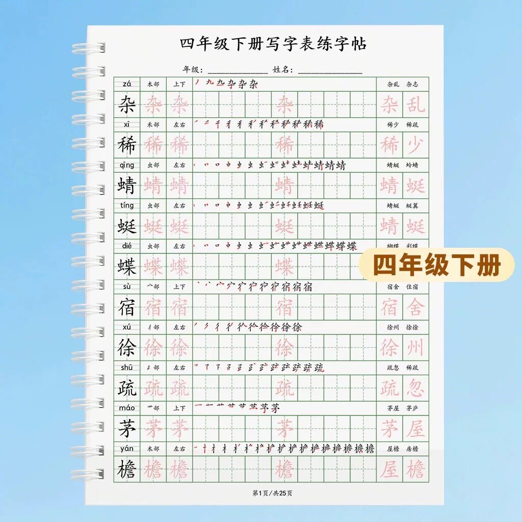 卷面书写同步练字帖小学生三四五六一二年级下册方格横线组词古诗