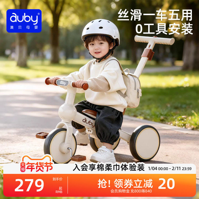 澳贝儿童三轮车宝宝脚踏车手推车平衡便携遛娃神器多功能折叠轻便