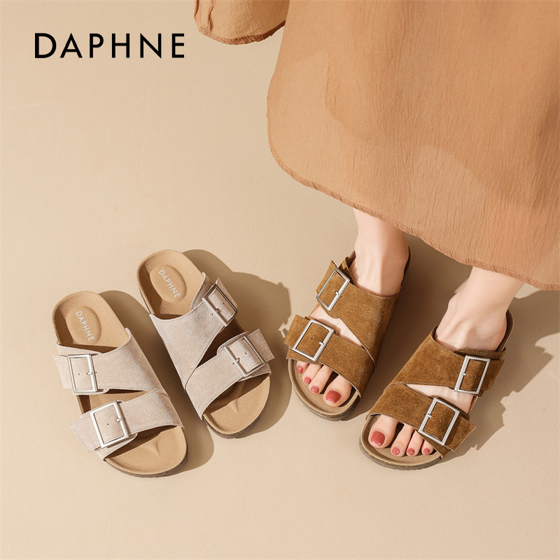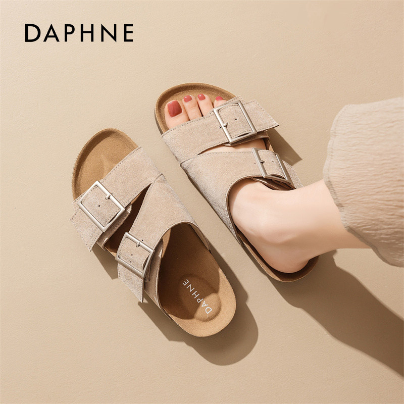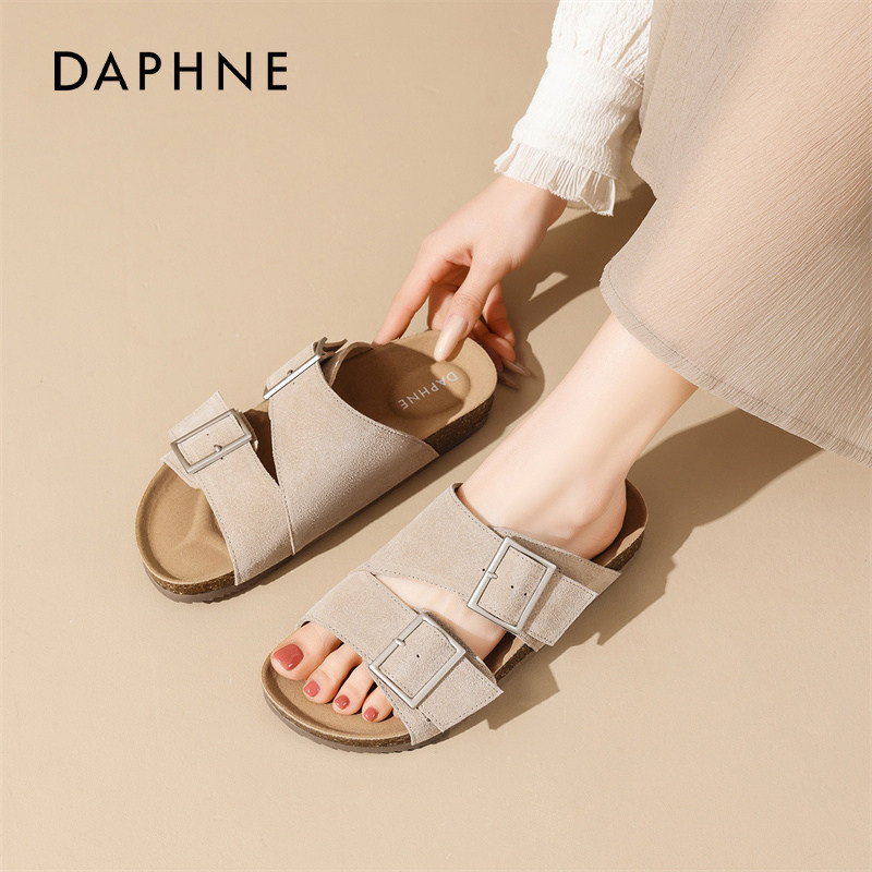 达芙妮勃肯拖鞋女2026夏季新款外穿平底一字拖露趾沙滩凉鞋配裙子