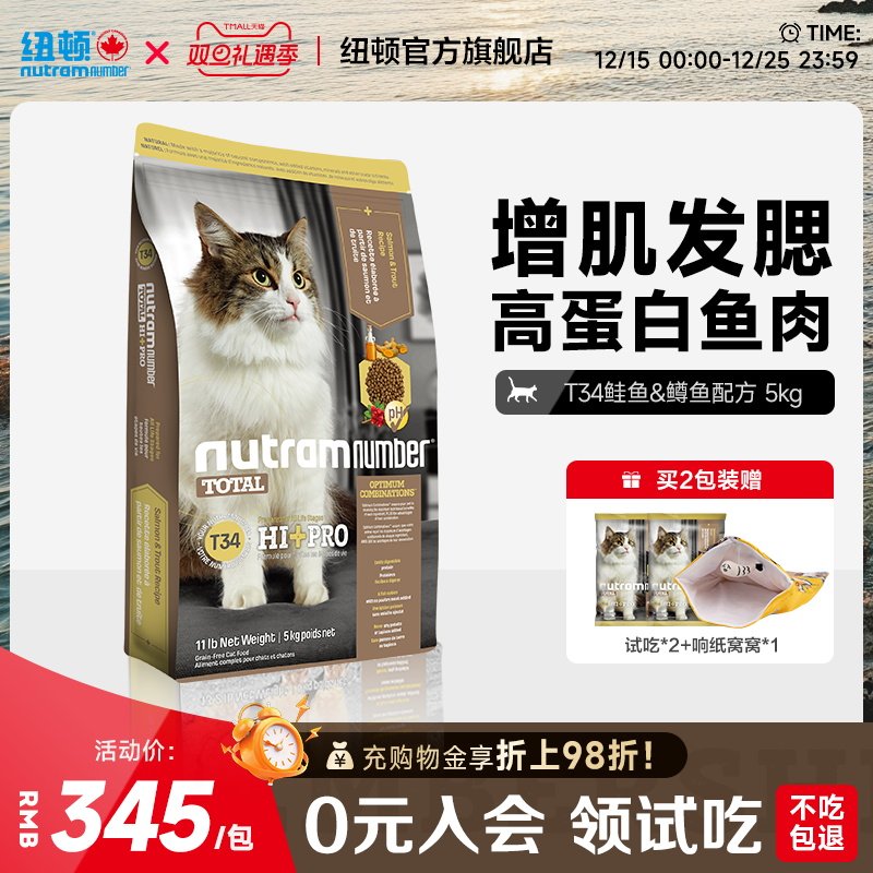 纽顿猫粮美国进口T34无谷高蛋白鲜肉成幼猫鱼肉味全价通用型猫粮