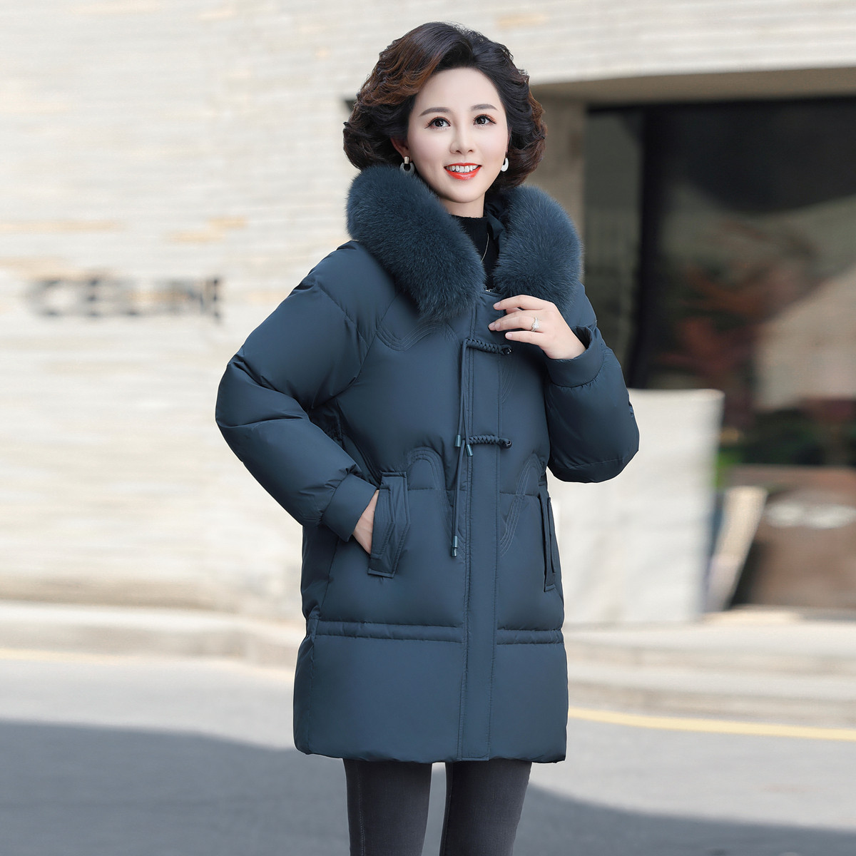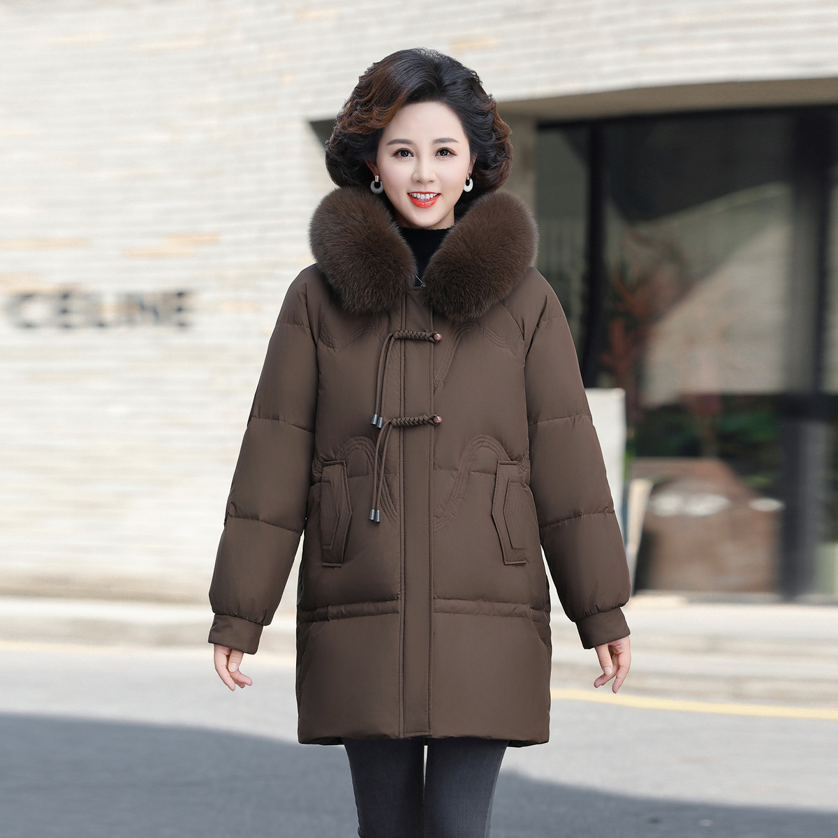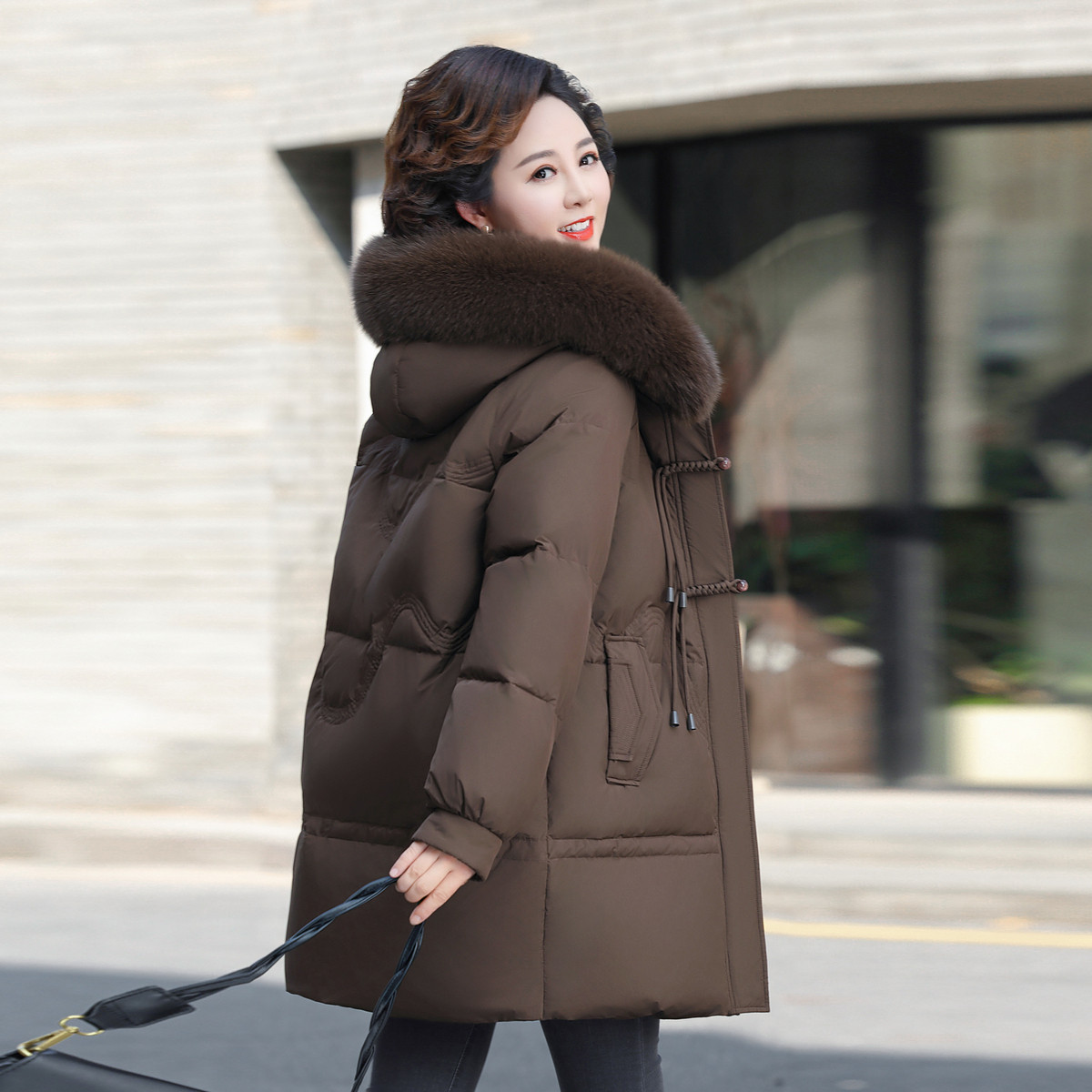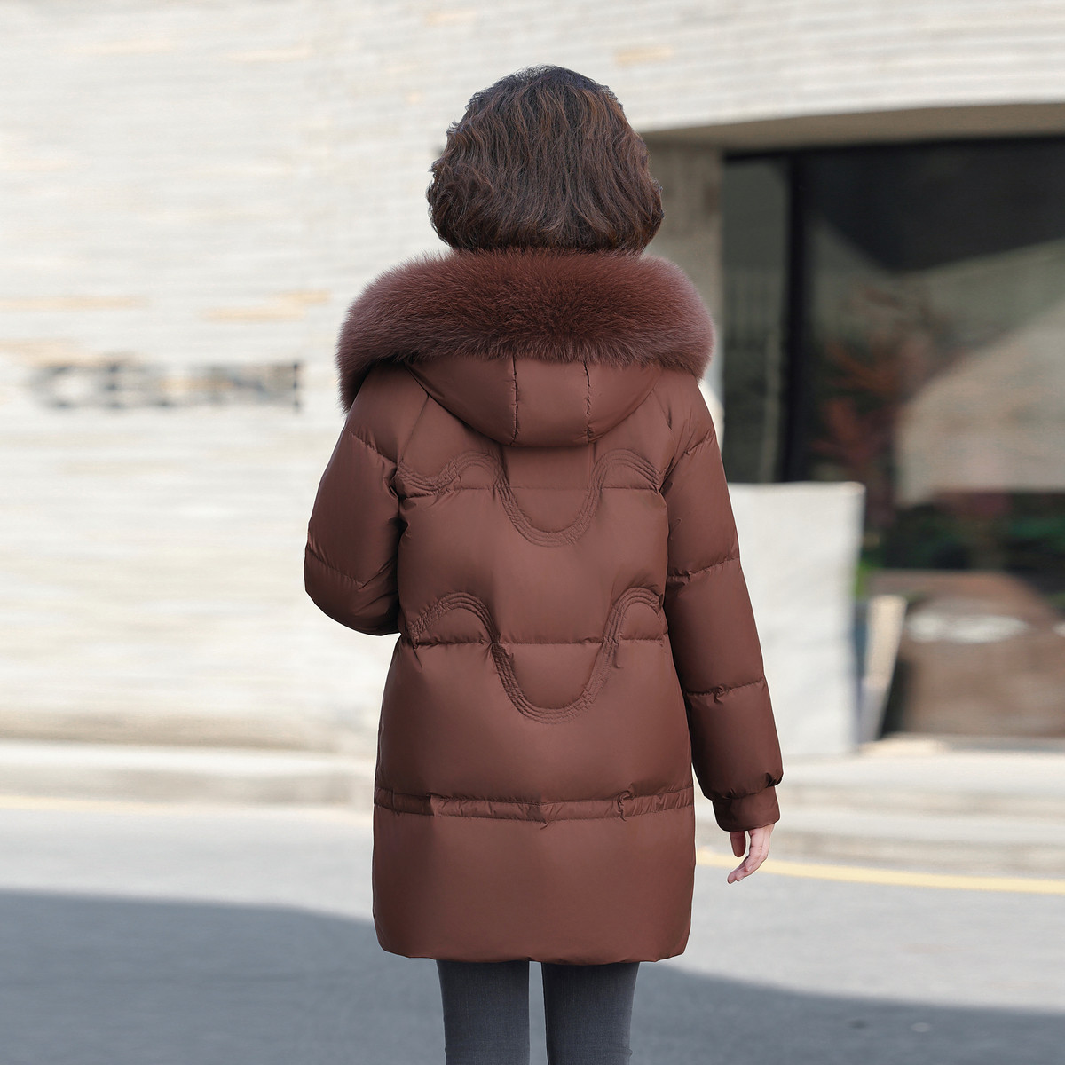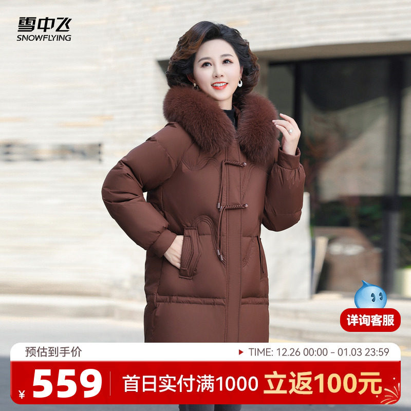 雪中飞2025冬新款女士妈妈款短款连帽羽绒服大毛领时尚洋气加厚