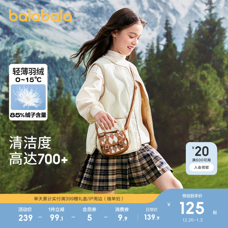 巴拉巴拉童装儿童羽绒马甲女童男童外穿新款2025冬装高充绒保暖潮