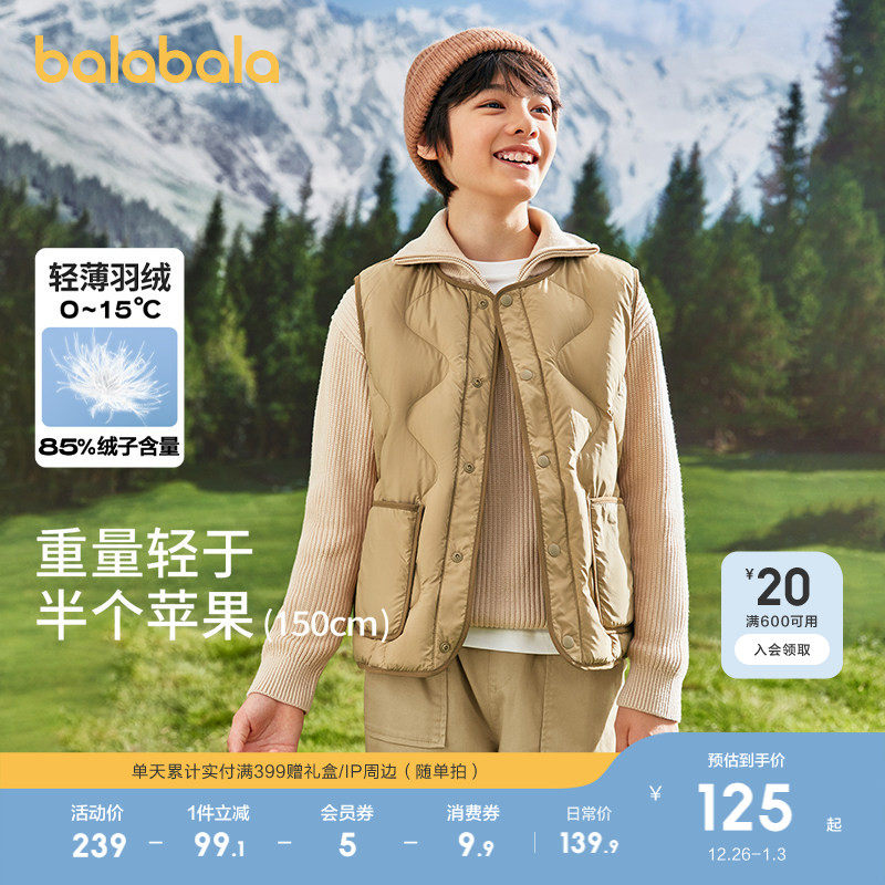 巴拉巴拉童装儿童羽绒马甲秋冬装2025男童女童轻薄休闲背心中大童