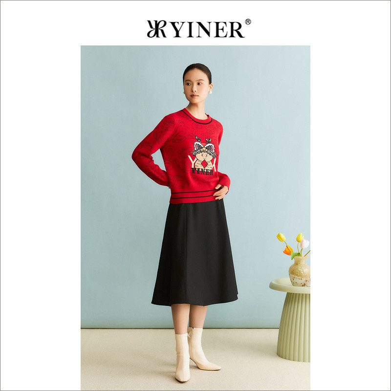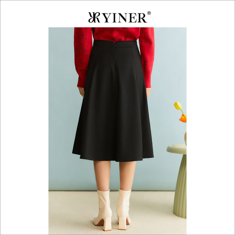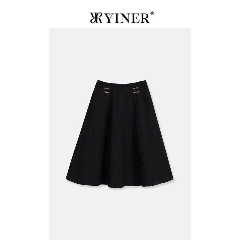 YINER音儿专选冬季女装法式优雅羊毛简约小黑裙A字半身裙
