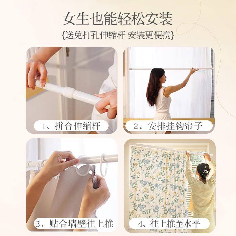 卧室双层免打孔安装透光不透人小碎花蕾丝窗帘飘窗纱帘帘子隔断帘