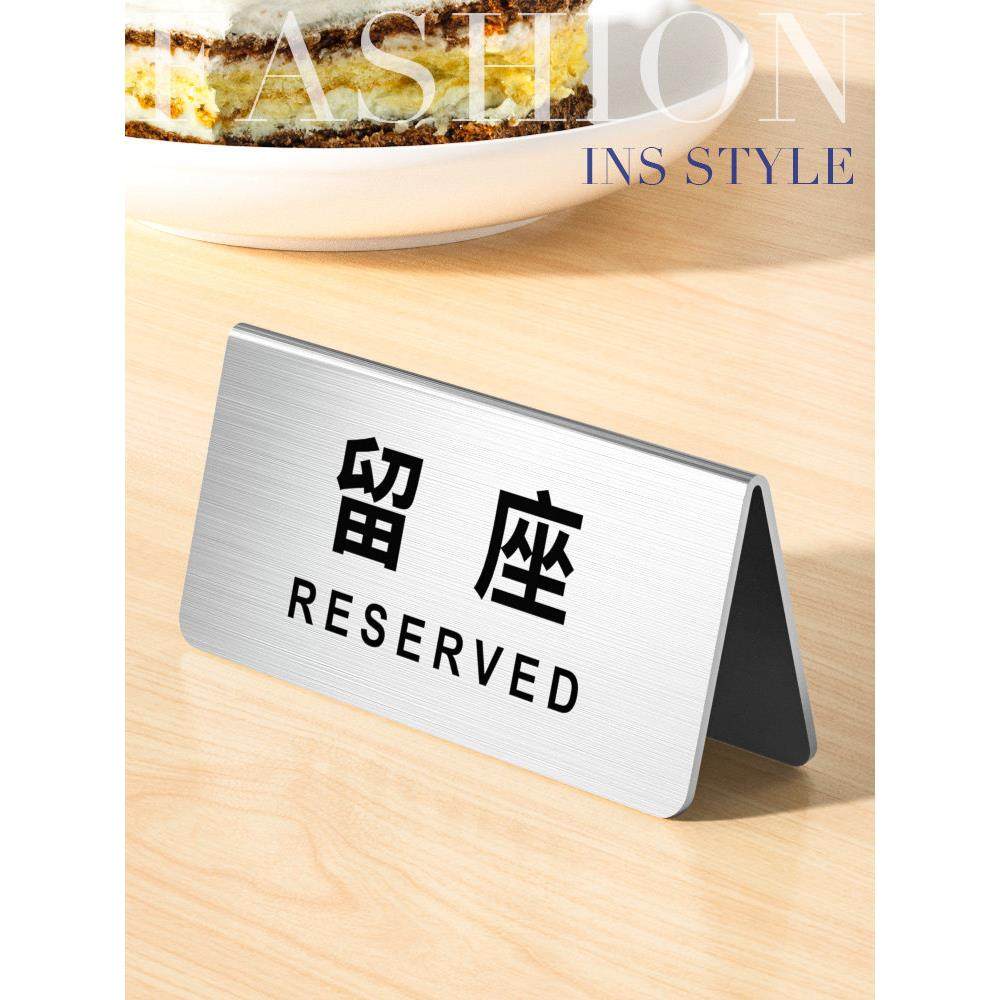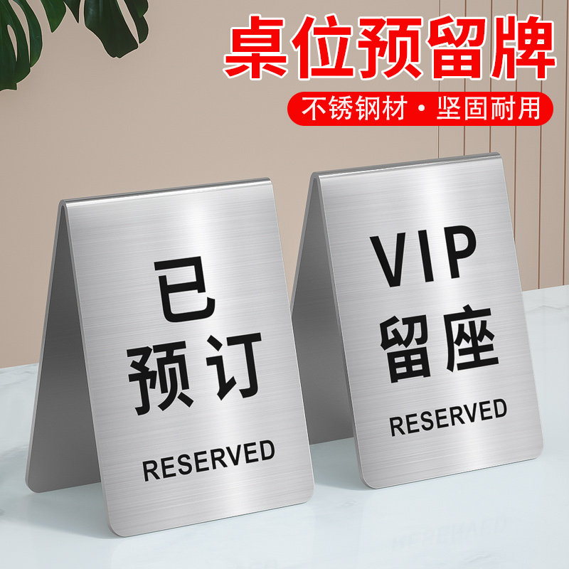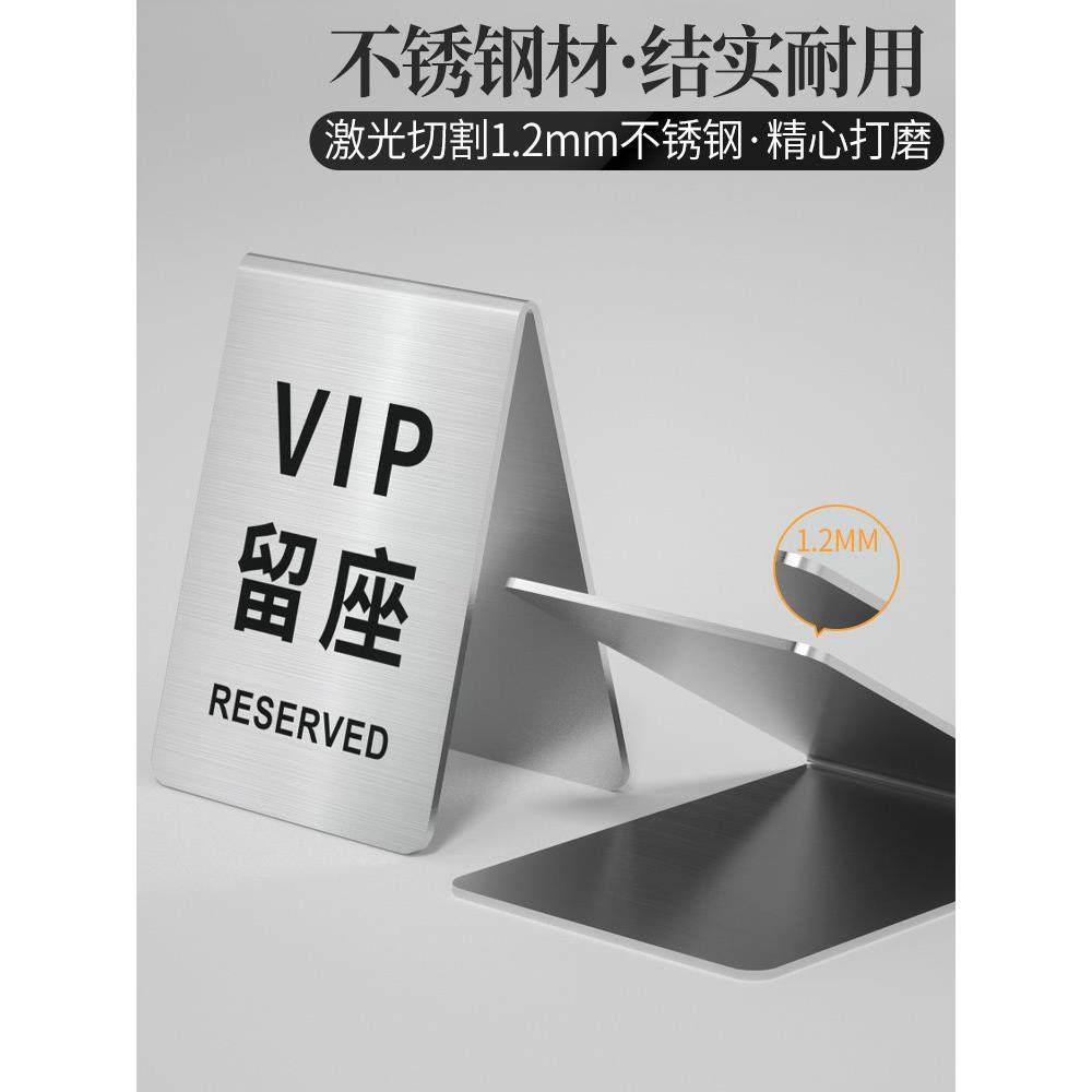 不锈钢留座牌桌号牌酒店餐厅饭店VIP已预定总英文双面座位桌牌留位预留预定台卡创意V型取餐号数字号码牌定制