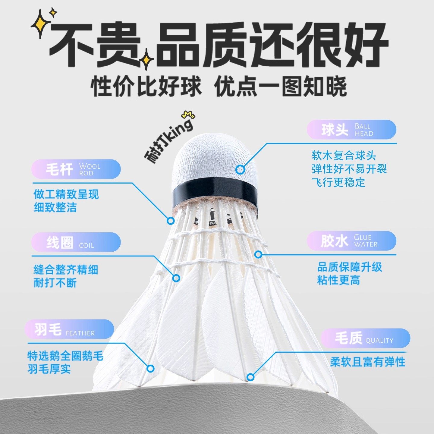 羽毛球正品耐打王室内室外训练用球6只装12只装防风稳定不易打烂