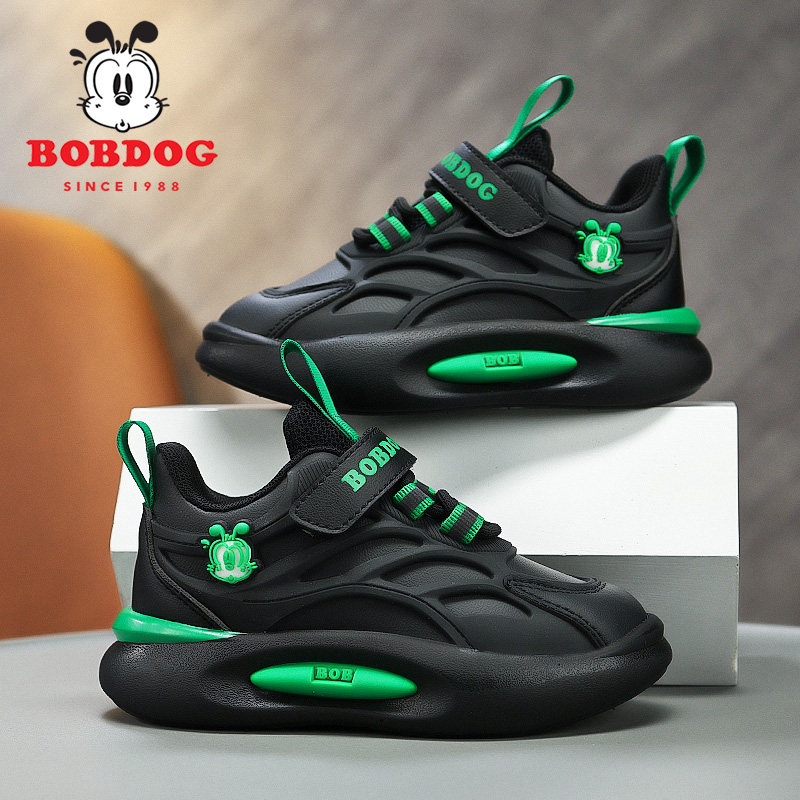 巴布豆男童运动鞋防水皮面2025秋冬新款时尚轻便软底女童跑步鞋子