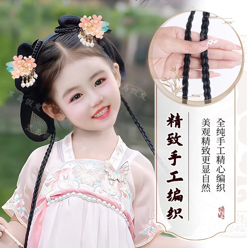 儿童汉服假发蝴蝶结发髻造型古装假发包女童汉服假发头饰假发古风