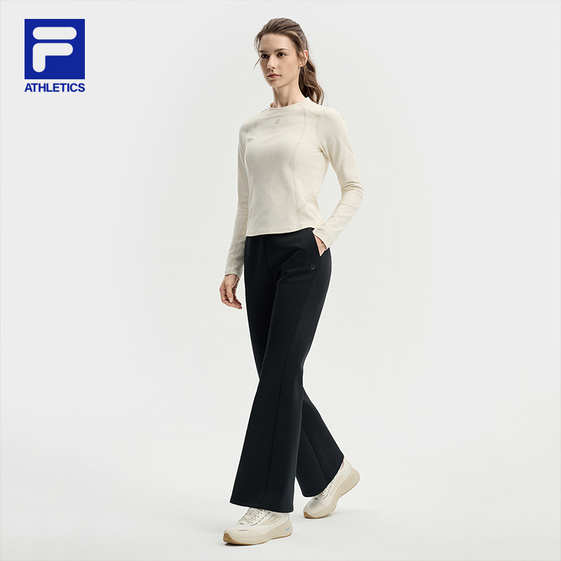 FILA 斐乐官方女士针织长裤2025冬季新款健身运动基础保暖直筒裤