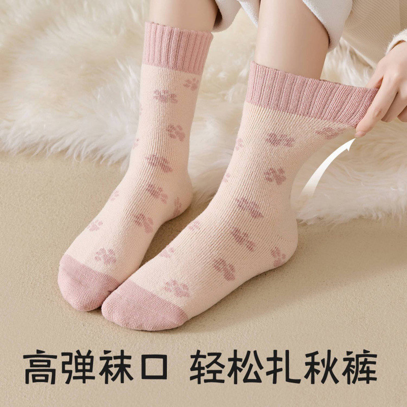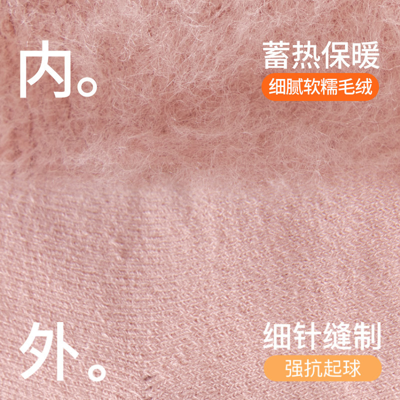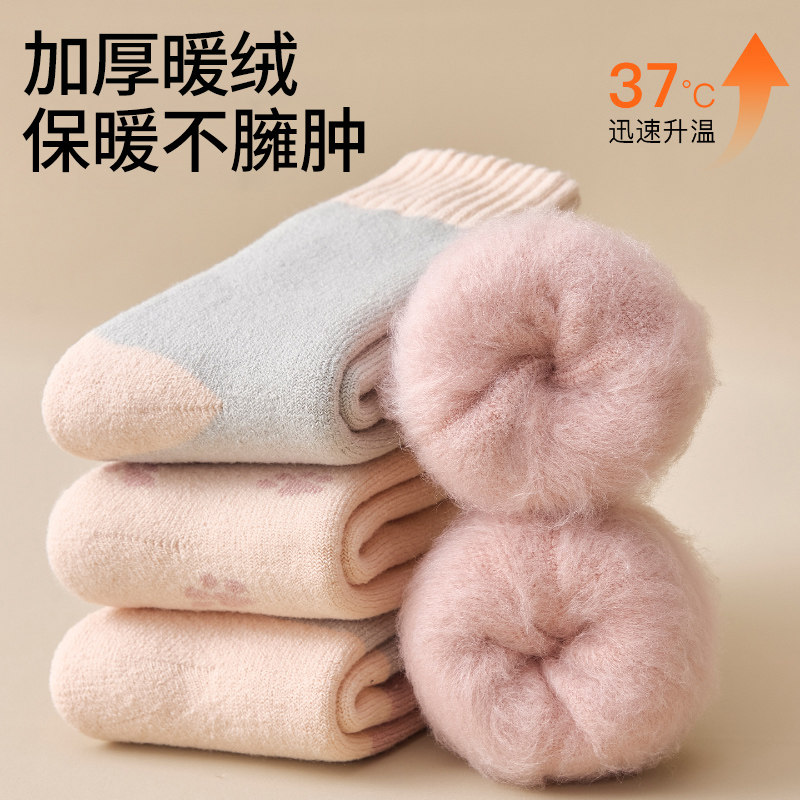 特厚羊绒袜子女秋冬季加绒加厚中筒袜保暖防臭睡眠毛圈粉色袜子
