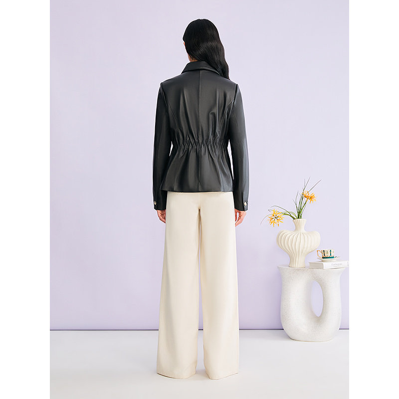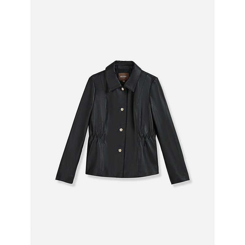 Eland衣恋皮衣女纯色带拉链长袖翻领外套2025冬季新款