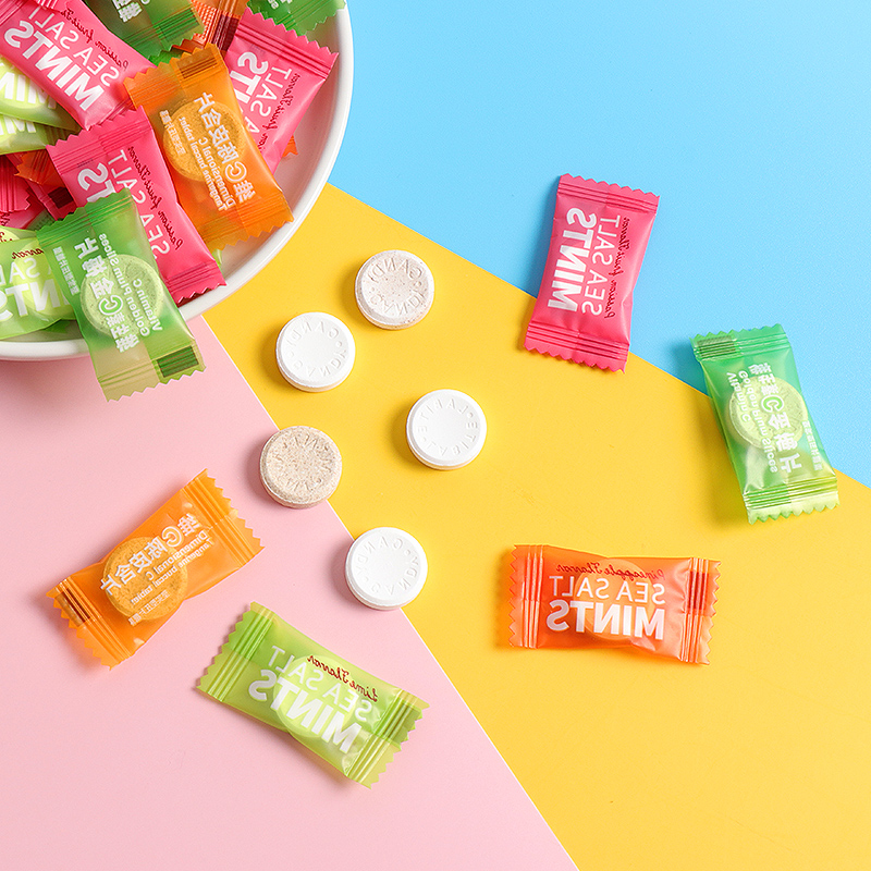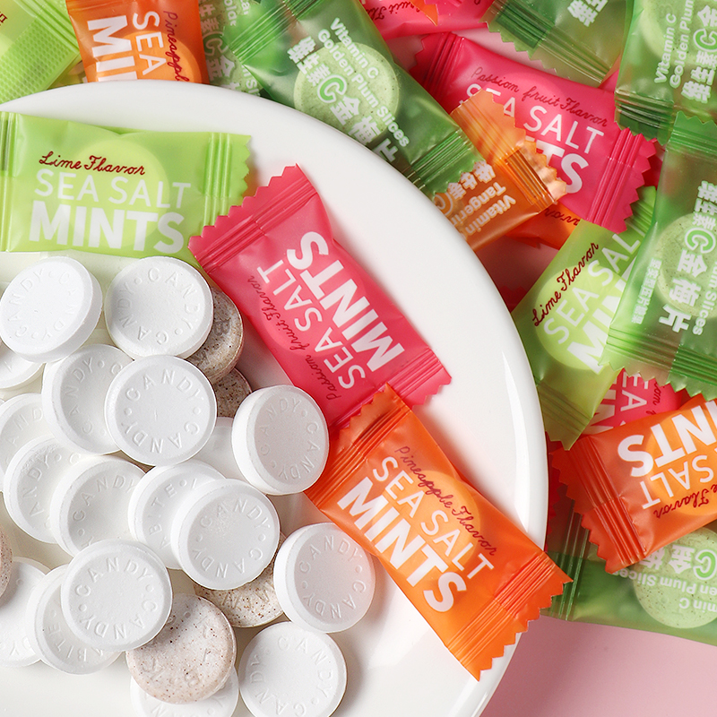海盐薄荷糖清新口气维c陈皮含片糖果零食多种零食品小吃百香果