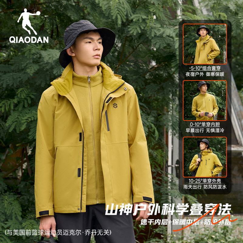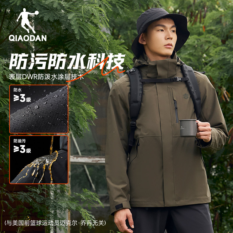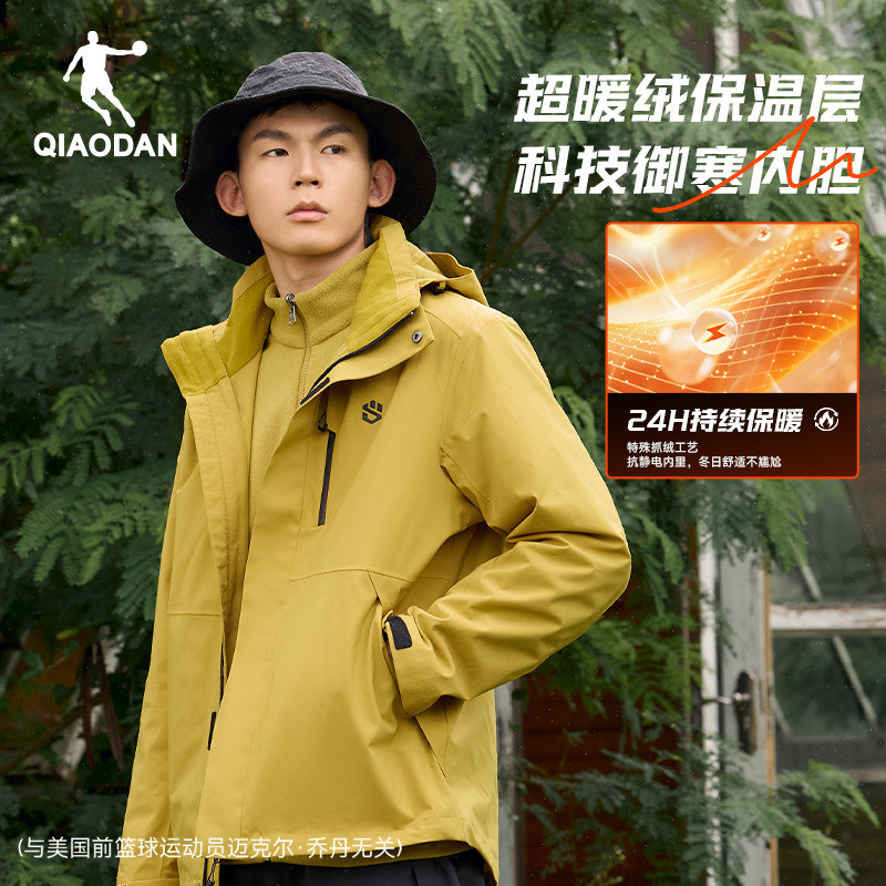 乔丹山神三合一冲锋衣外套夹克防泼水男2025冬季防风保暖官方正品