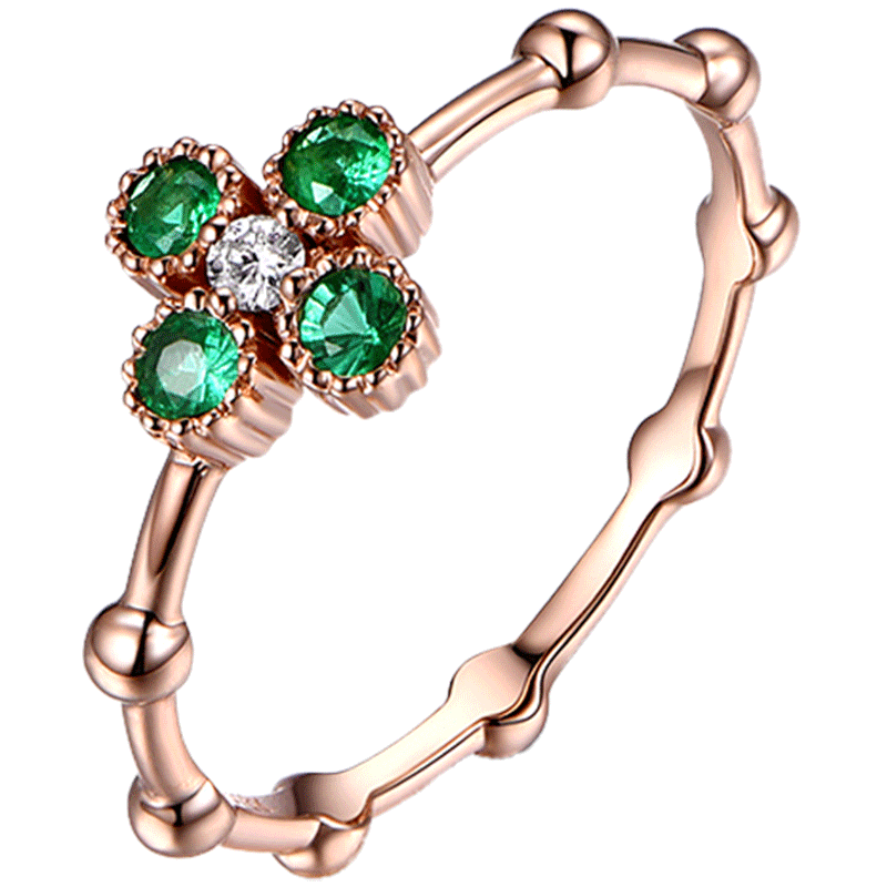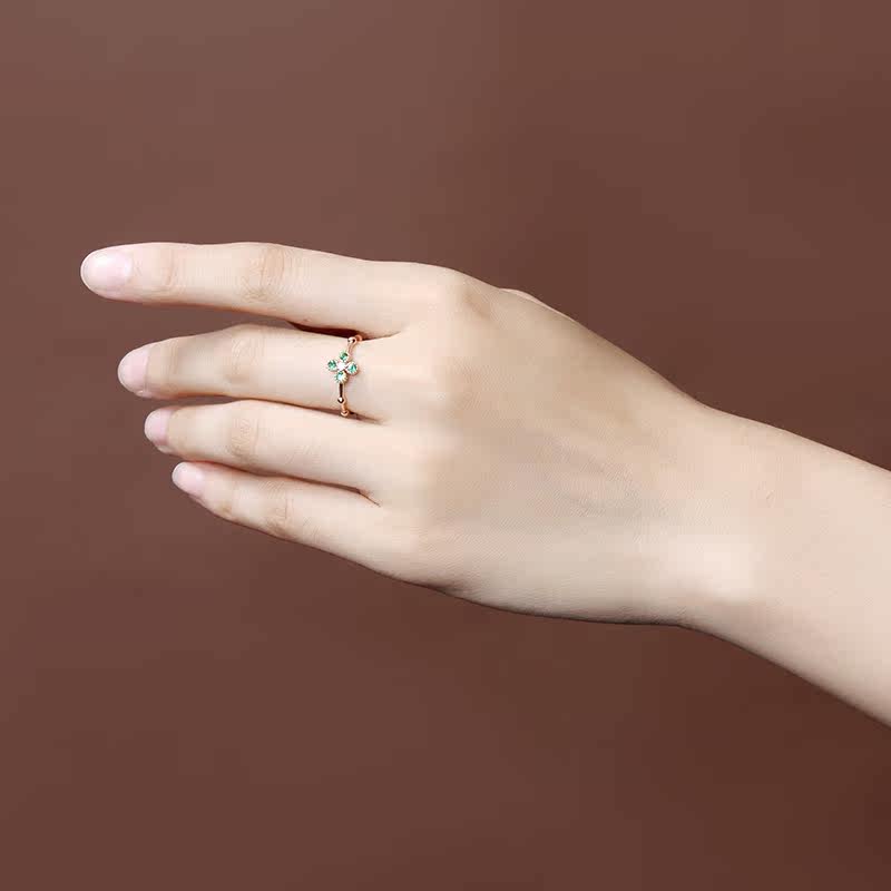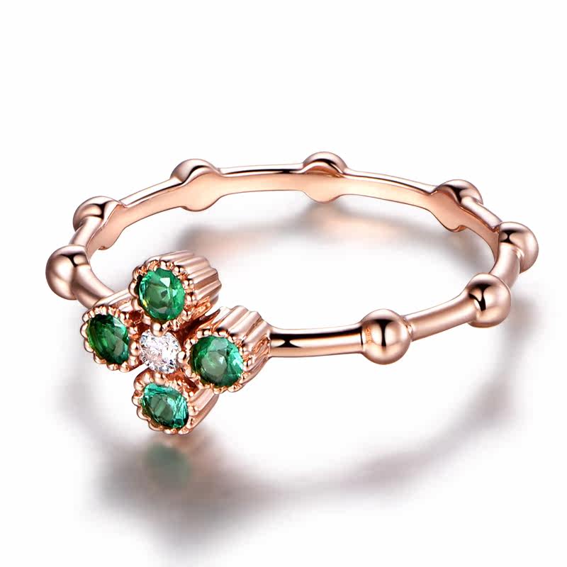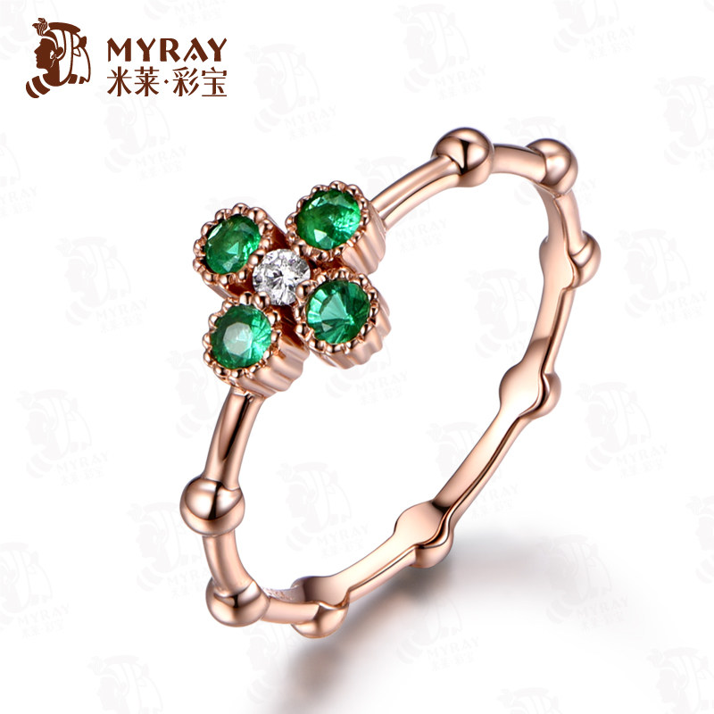 米莱珠宝 0.32克拉祖母绿戒指18k金镶钻绿宝石 彩色宝石