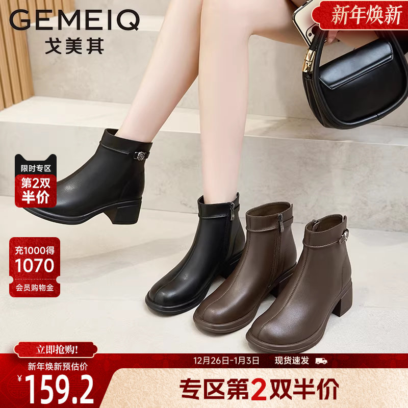 戈美其瘦瘦靴短靴女款2024秋冬新款百搭配裙子粗跟靴子法式小踝靴