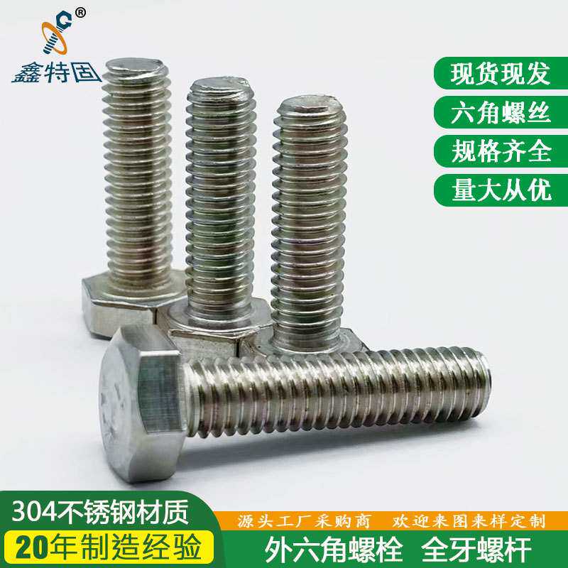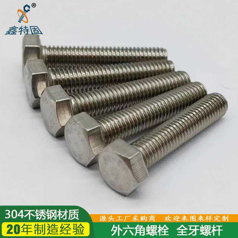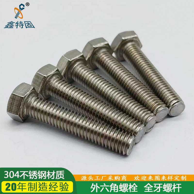 304不锈钢外六角螺丝六角头螺栓全牙螺杆螺钉紧固件DIN933标螺纹