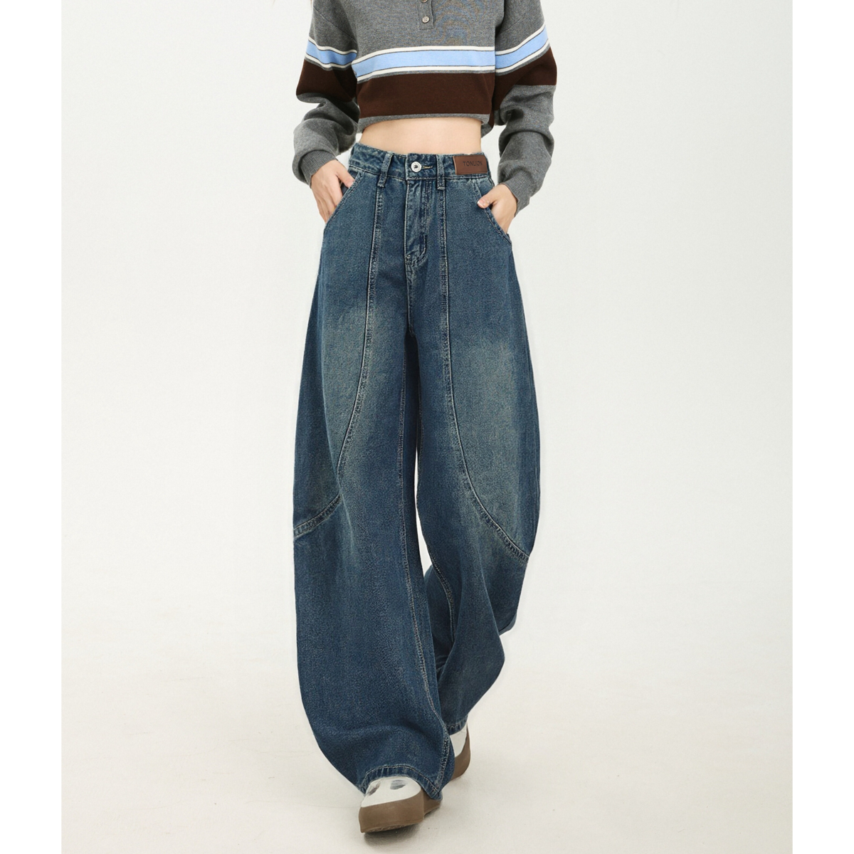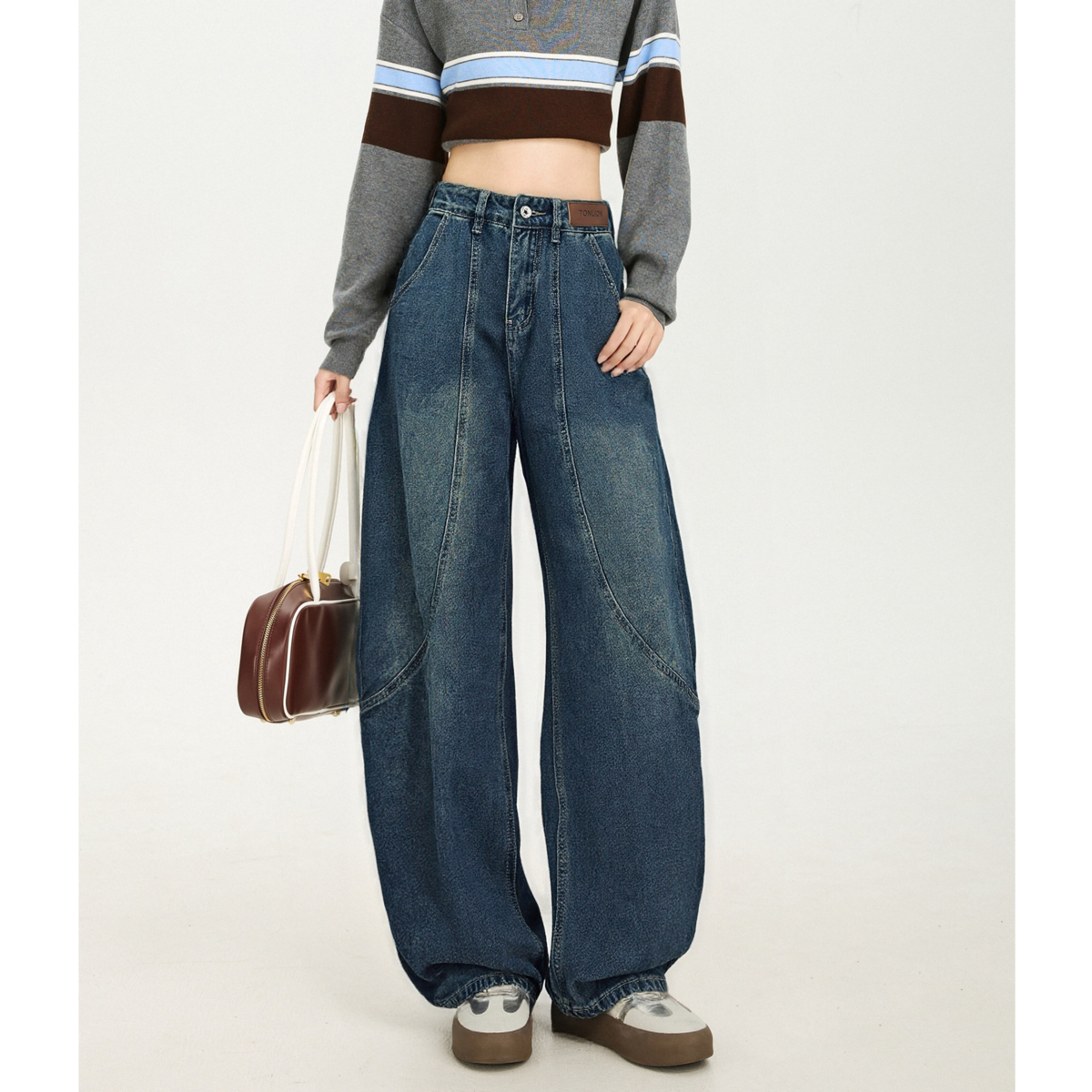 唐狮春秋女裤阔腿牛仔裤高级感小个子显瘦显高时尚流行百搭TD