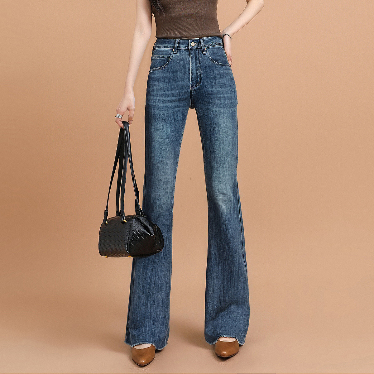 一三良品小个子 大长腿 复古修身显瘦牛仔裤长裤拖地喇叭裤子女秋