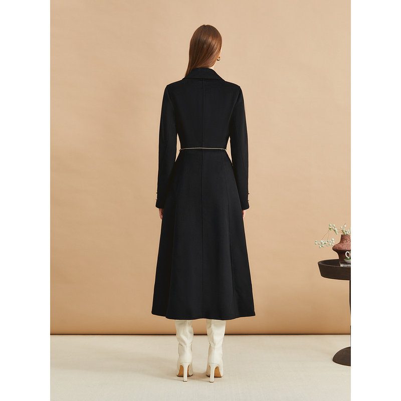 一三良品小个子 奥黛丽黑色气质收腰全羊毛双面呢长款大衣外套冬