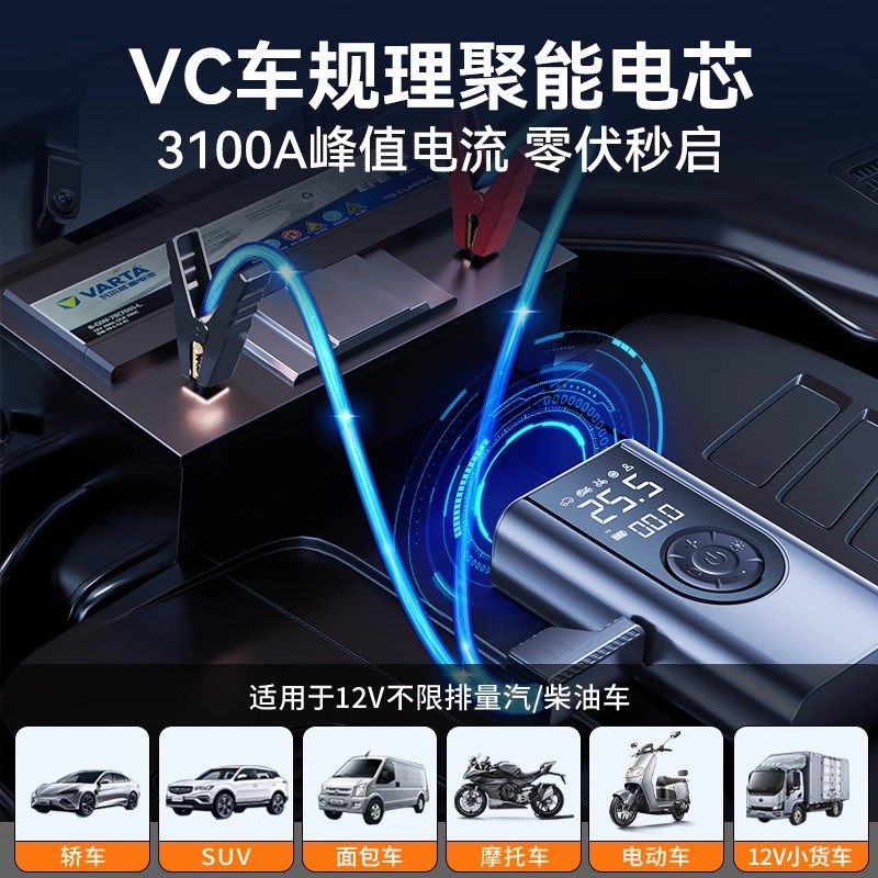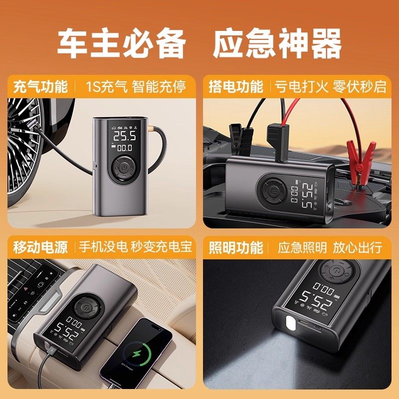 车载充气泵适用于小米汽车电动打气泵轮胎测压应急启动电源一体机